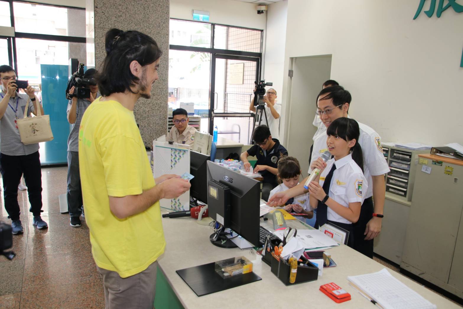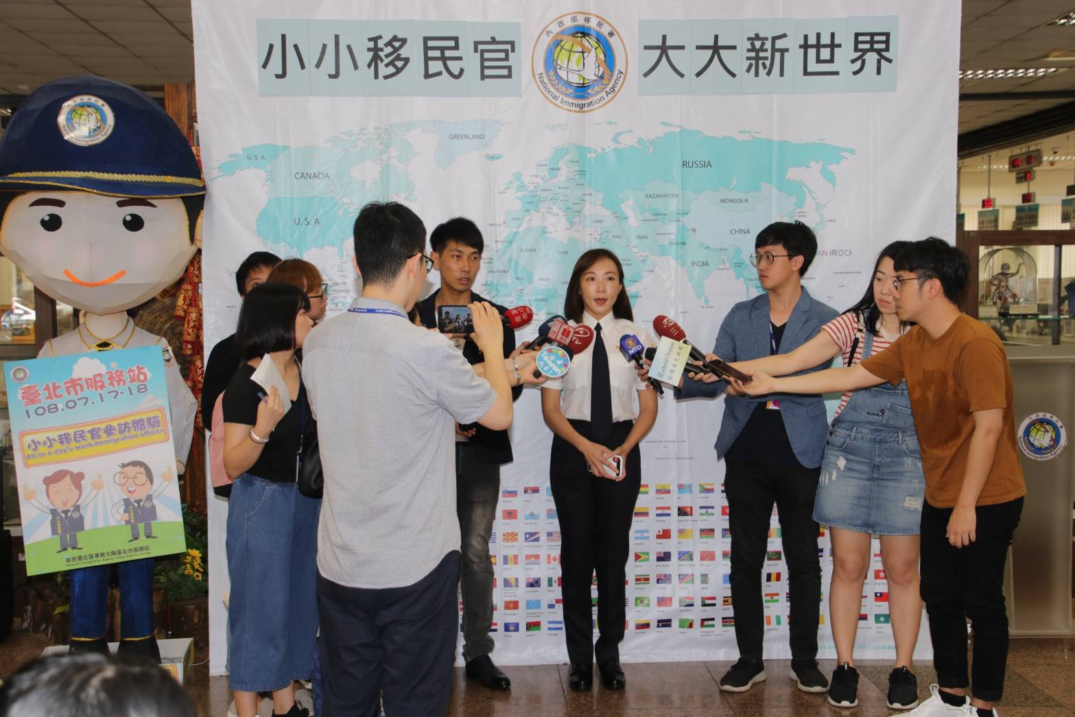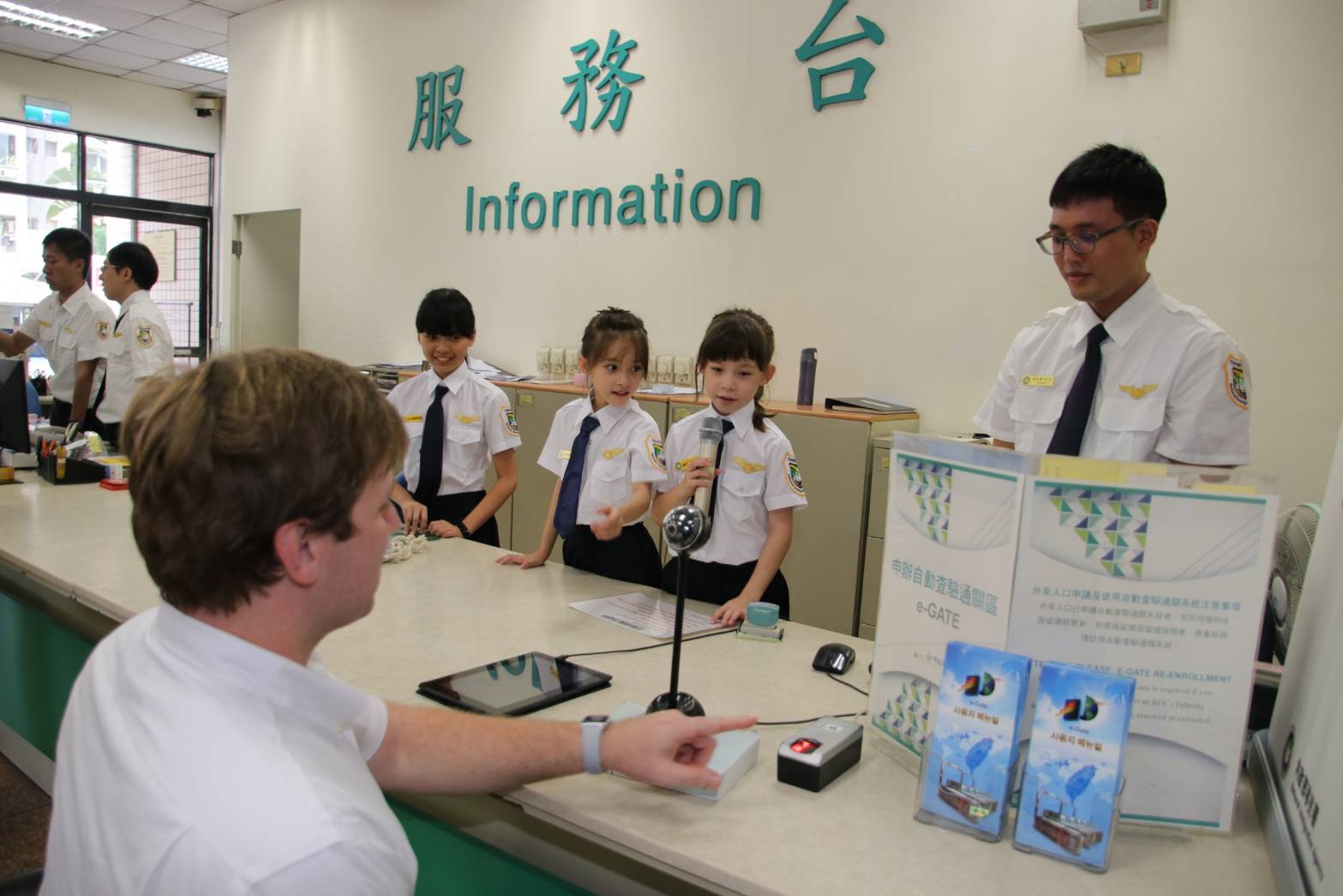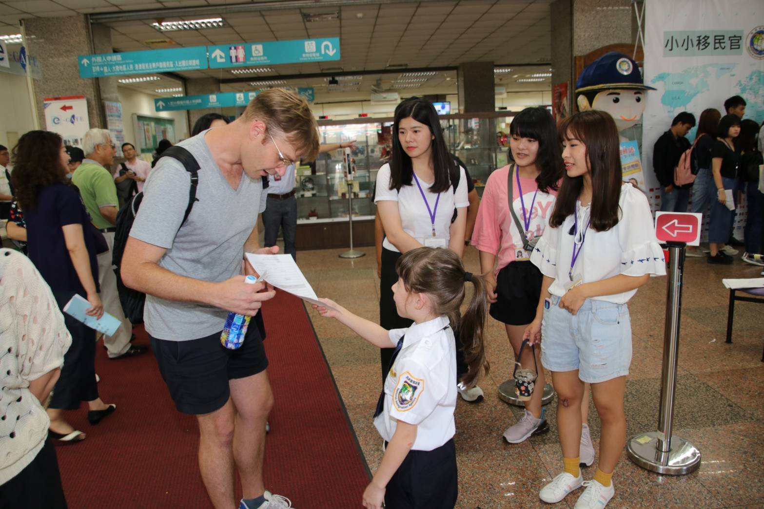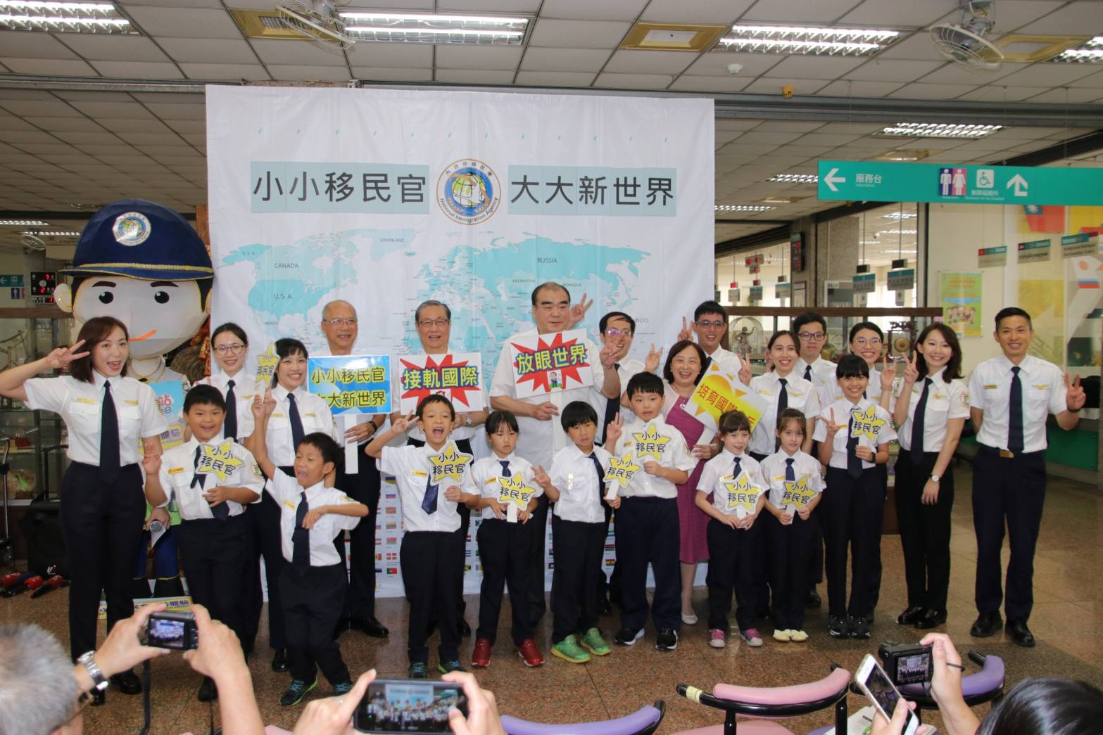 為了增加兒童從小對國境及人流安全管理及移民官工作的瞭解,移民署特於7月17日及18日,舉辦2天8梯次的「小小移民官參訪體驗活動」,由於正值暑假期間,80個名額已迅速額滿,今天活動的小朋友之父或母國家(地區)有來自美國、越南、中國大陸及台灣,他們除了模擬抽號、外僑居留證的發證等關卡之外,還可以幫爸媽辦理自動通關註冊,以後持護照嗶嗶12秒即可完成通關,現場還有大、小移民官合影相見歡,活動趣味橫生。
