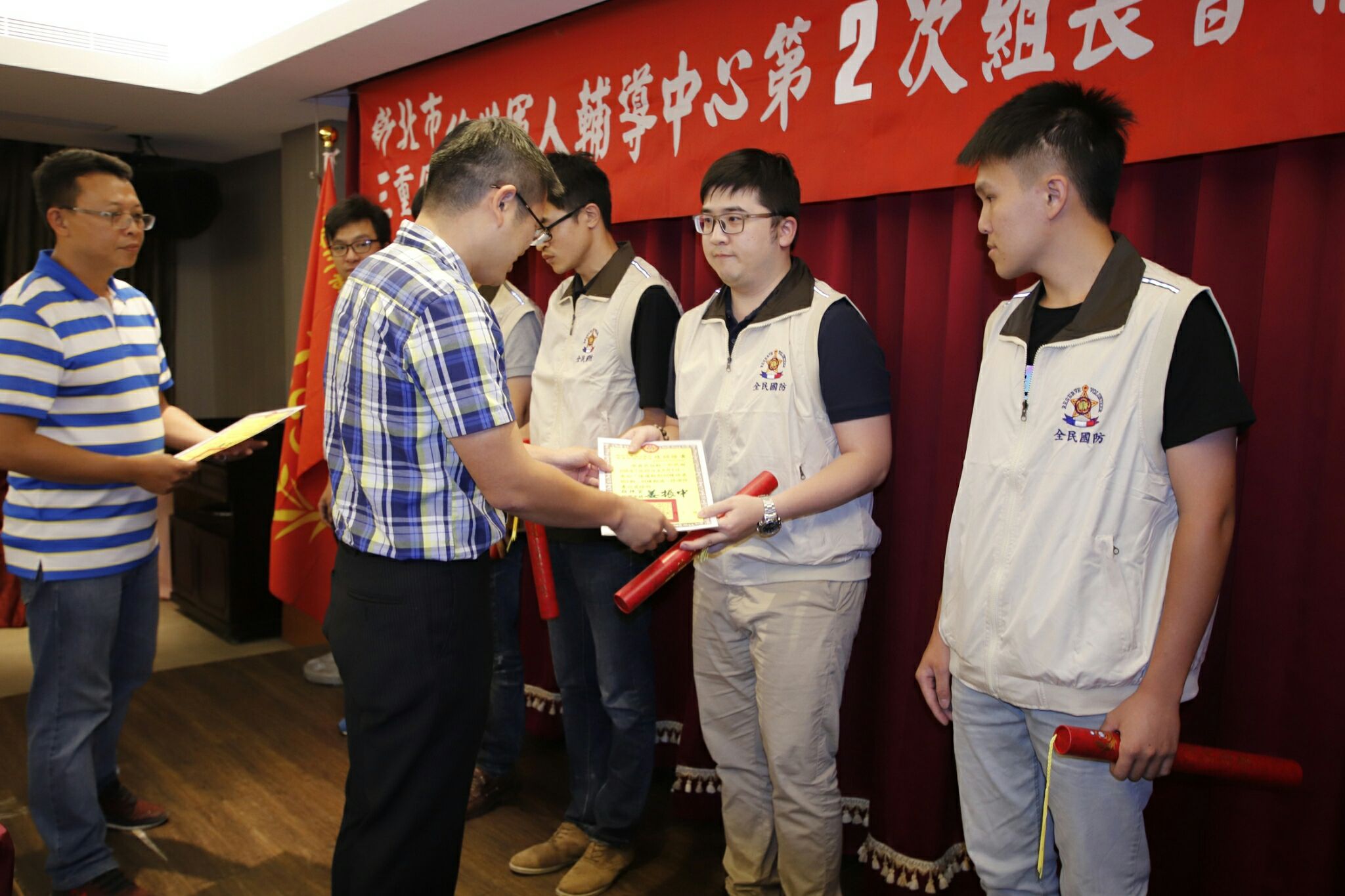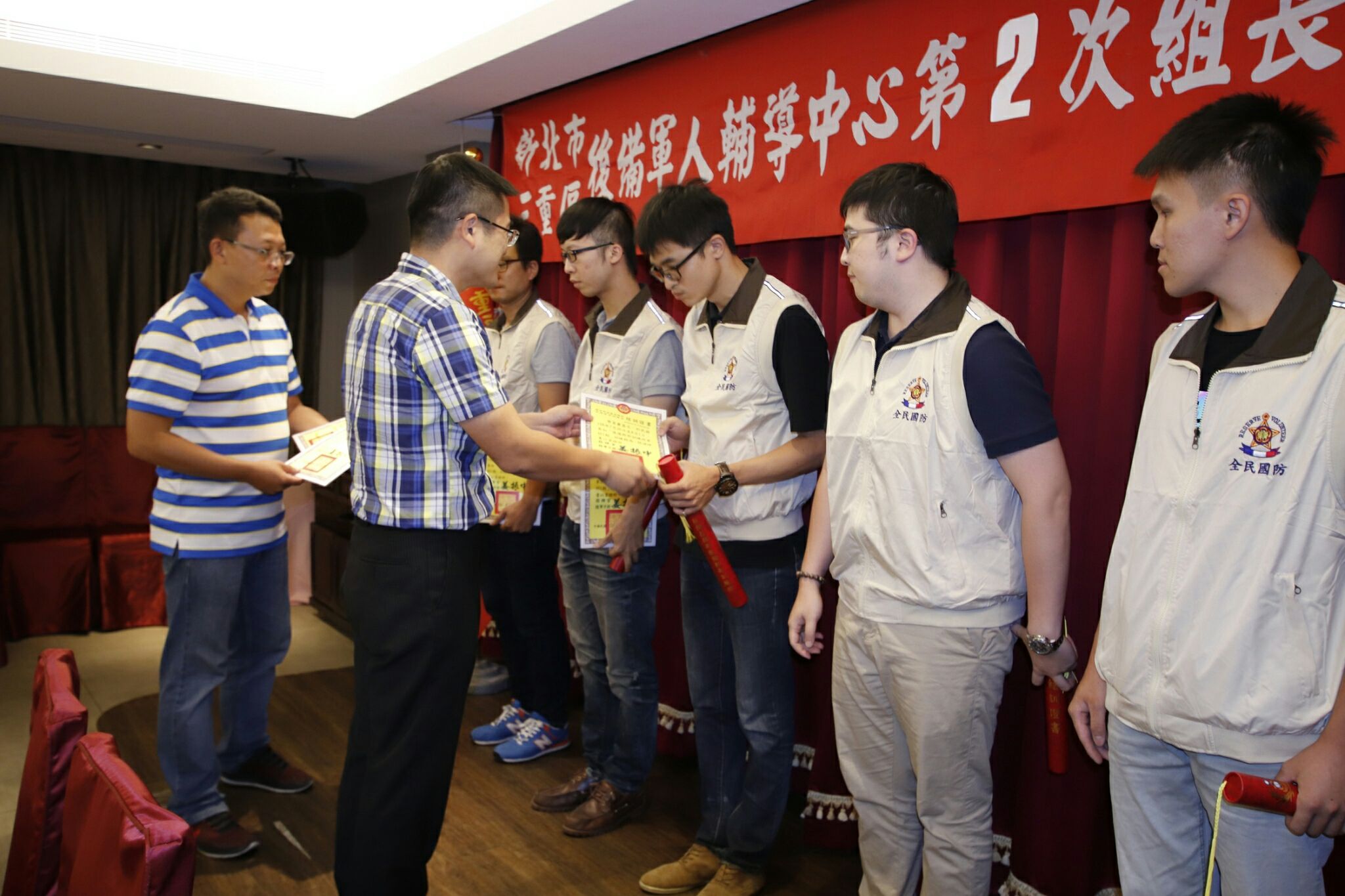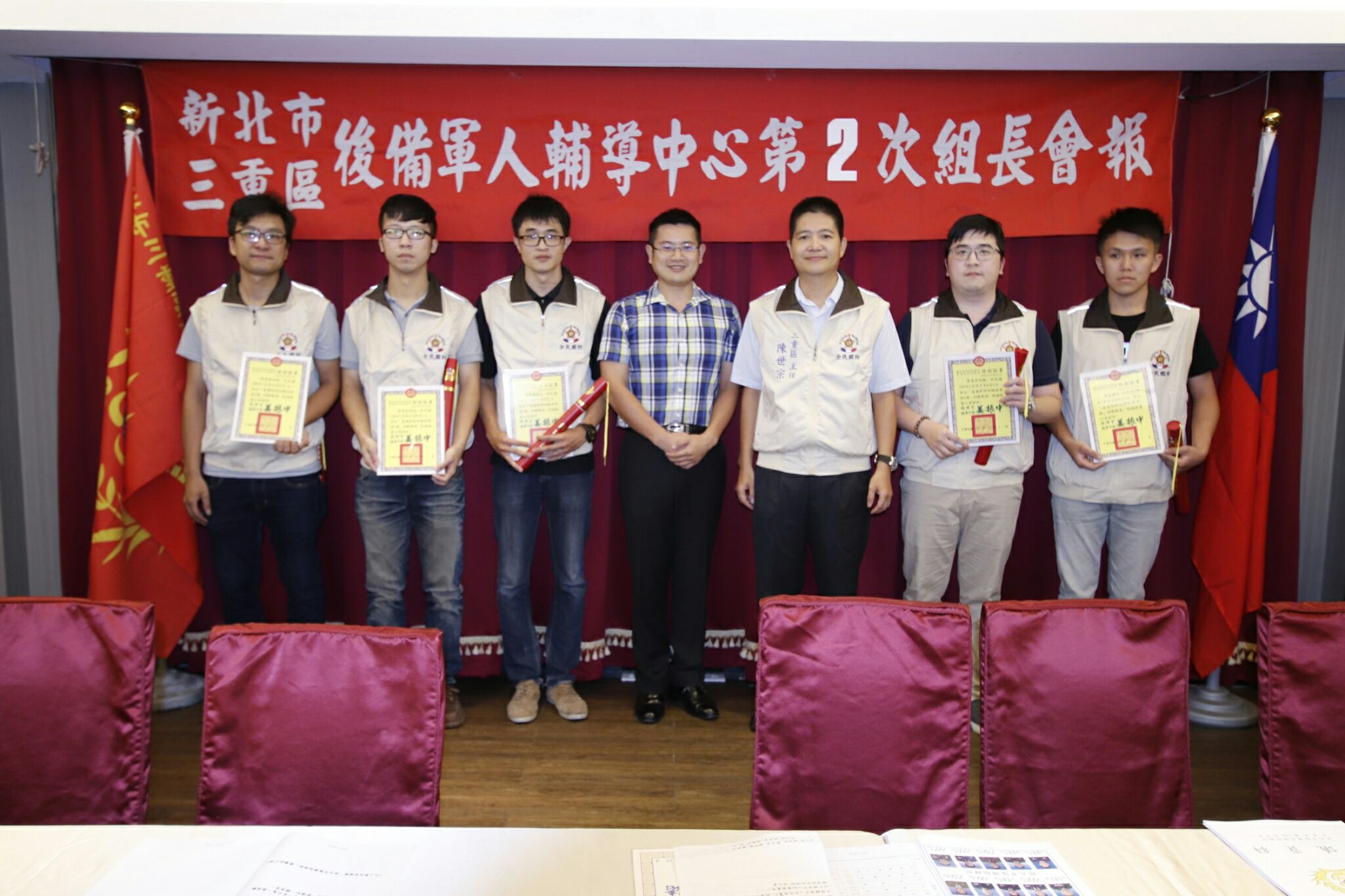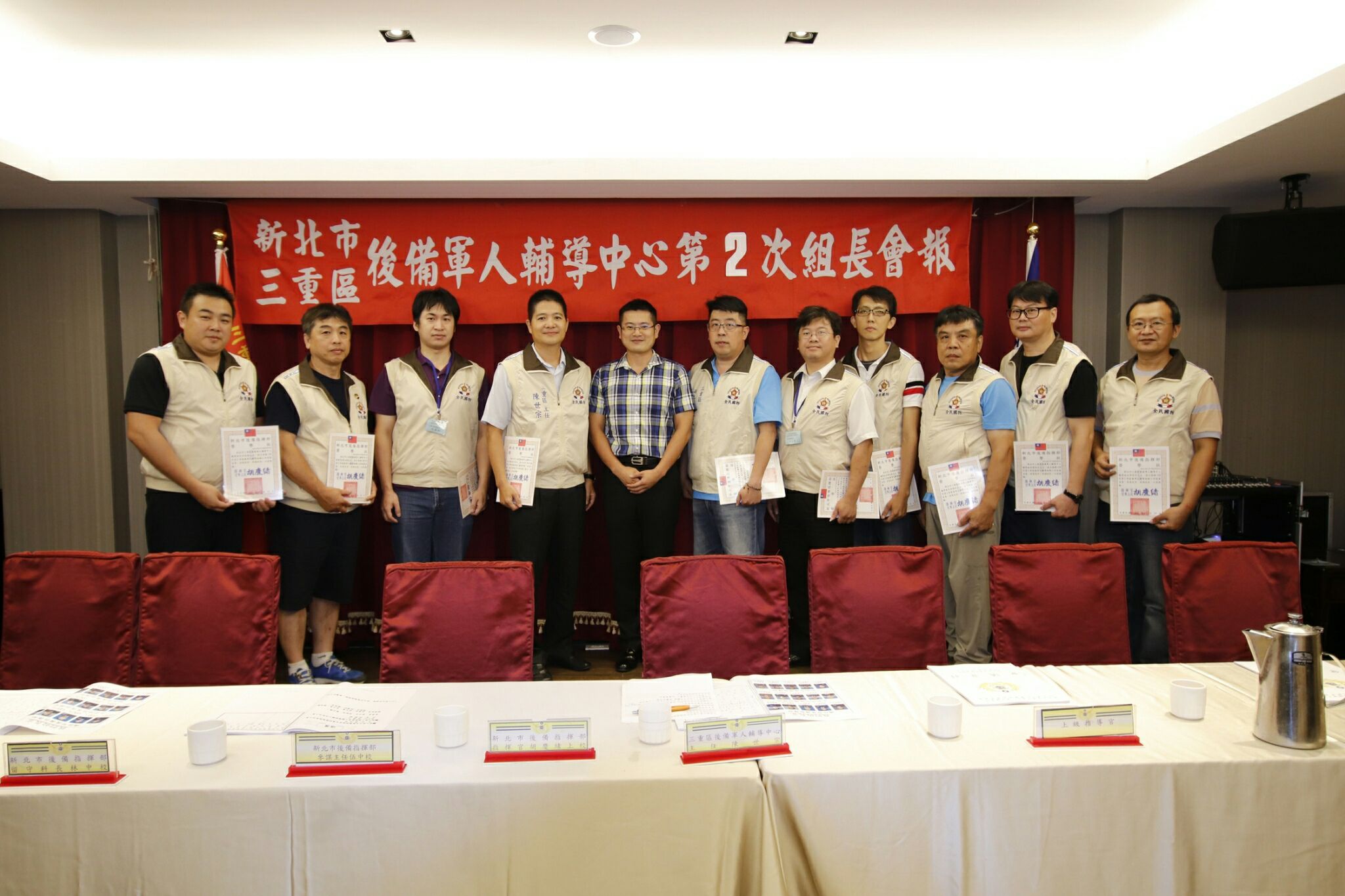 新北市後備指揮部三重區後備軍人輔導中心,108年8月2日假蘆洲海霸王貴賓廳舉行,會議由陳主任世宗主持108年度第2次輔導組長聯席會報,首先由新北市後備指揮部林中校頒發「執行新北市後備旅教育召集訓練」慰勉有功人員、「執行第2季後備軍人輔導組織」有功人員等榮譽狀乙幀;接著由中心林秘書世輝,依程序宣(轉)達「上級交辦事項」、「當前政策與工作重點」轉達上級一般規定及指示事項、指揮部除檢討過去策進未來及組織宣傳安全服務工作外,對於提升輔導組織協力事項交付、輔導中心對「輔導組織、服務、宣傳及安全四大工作」報告外,亦說明中心未來重要工作辦理事項及期程,並對「輔導組織協力災害防救具體措施」分組討論。感謝三重區各督導、組長、輔導員幹部共同齊心努力服務鄉梓,做為全民最堅強的國防後盾。