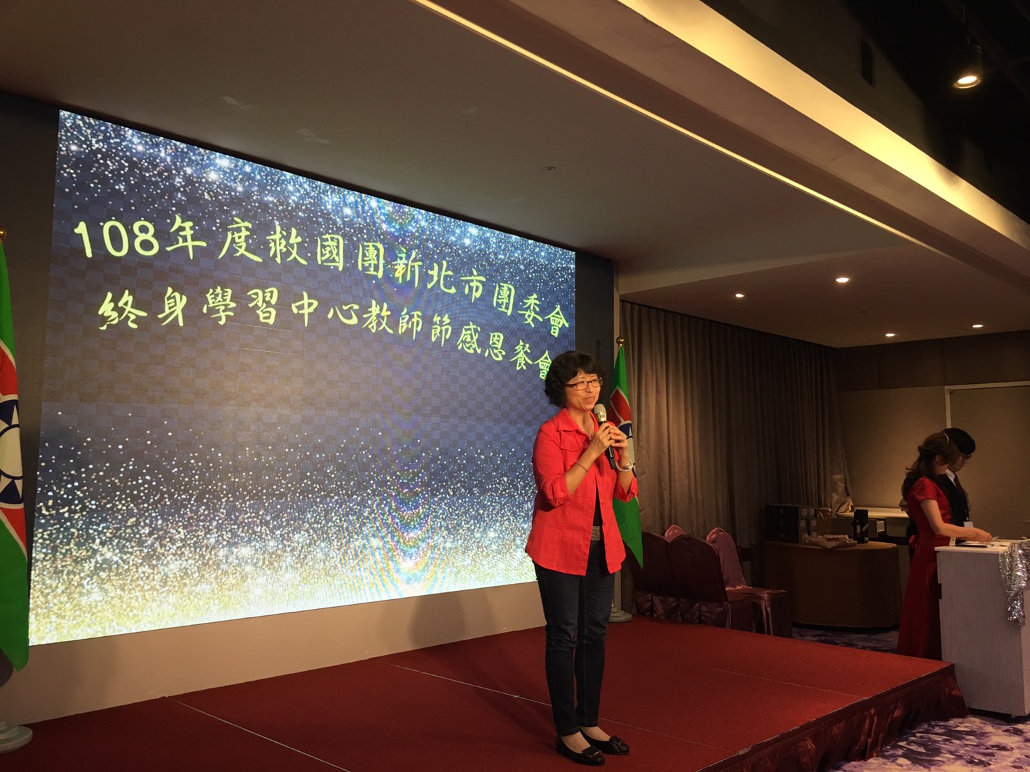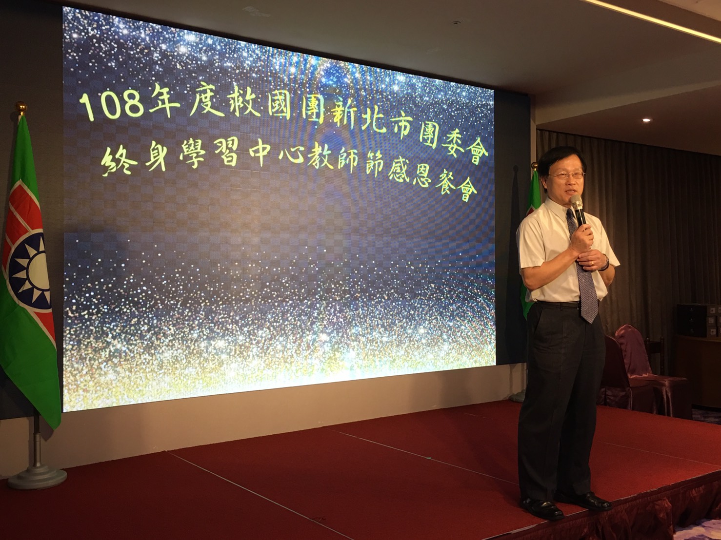本年度教師節感恩餐會,新北市團委會很榮幸邀請到持續關心教育議題的立法委員柯志恩、新北市政府社會局許秀能副局長,以及新北市政府教育局陳沛雯督學出席,向在場教師表達敬意與謝意。柯志恩委員致詞提到自己以前參加過許多救國團活動,在活動中結交好友,也曾參加張老師心理諮商訓練,肯定救國團公益服務成果;社會局許副局長致詞時表示:「救國團是很優質的終身學習單位,幫忙政府照顧全年齡層的民眾,從小朋友到老年人,都有合適的課程,也幫忙勞工朋友增進職場競爭力」;教育局陳督學致詞時表示:「感謝救國團辦理多元課程及活動,也感謝多才多藝的老師協助社會大眾,教育局社會教育科著重耕耘終身教育,但公部門資源、能力有限,仰賴救國團提供豐富課程,希望公部門跟民間團體的力量能結合,持續提供更多服務給新北市民眾,再次感謝所有老師的付出與辛勞!」。