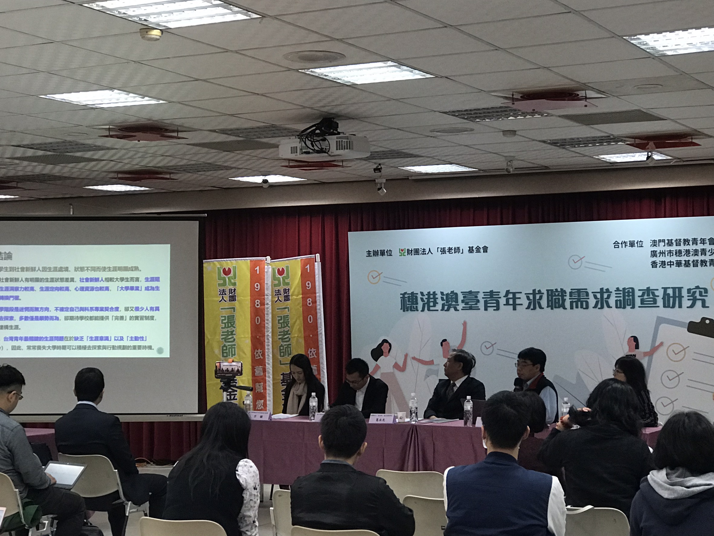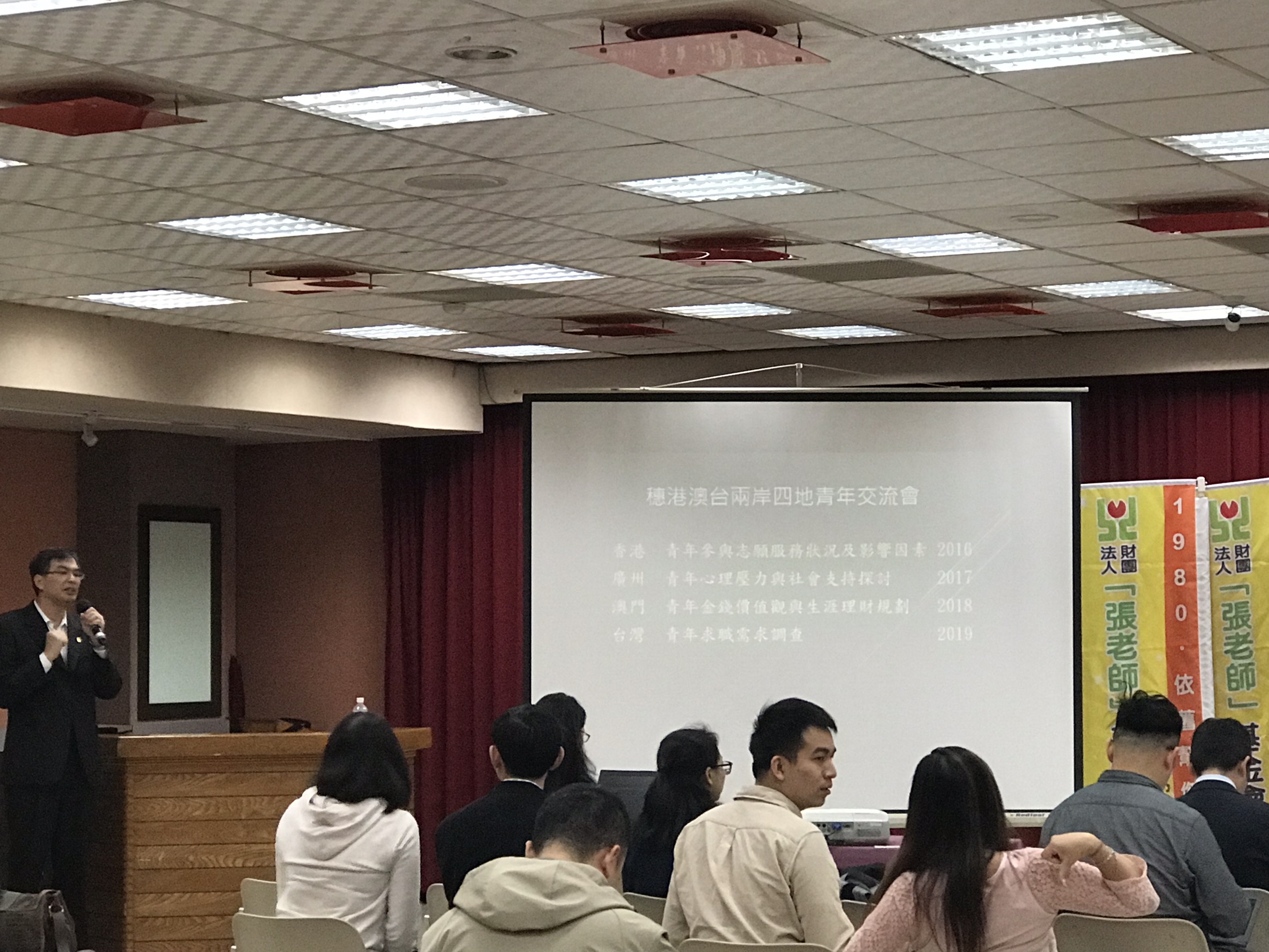「張老師」基金會舉辦穗港澳台青年求職需求調查研究,由基金會葛永光董事長主持,藉此感謝廣州市穗港澳青少年研究所、澳門基督教青年會與香港中華基督教青年會一同關心青年問題。