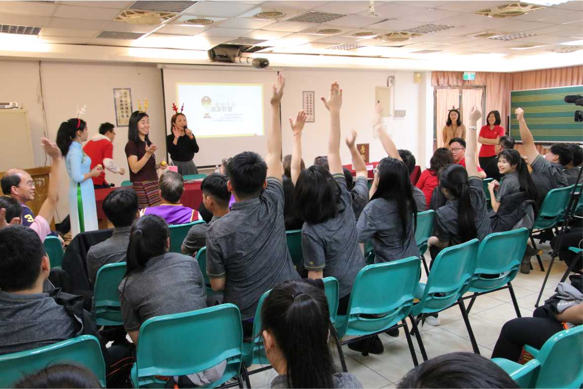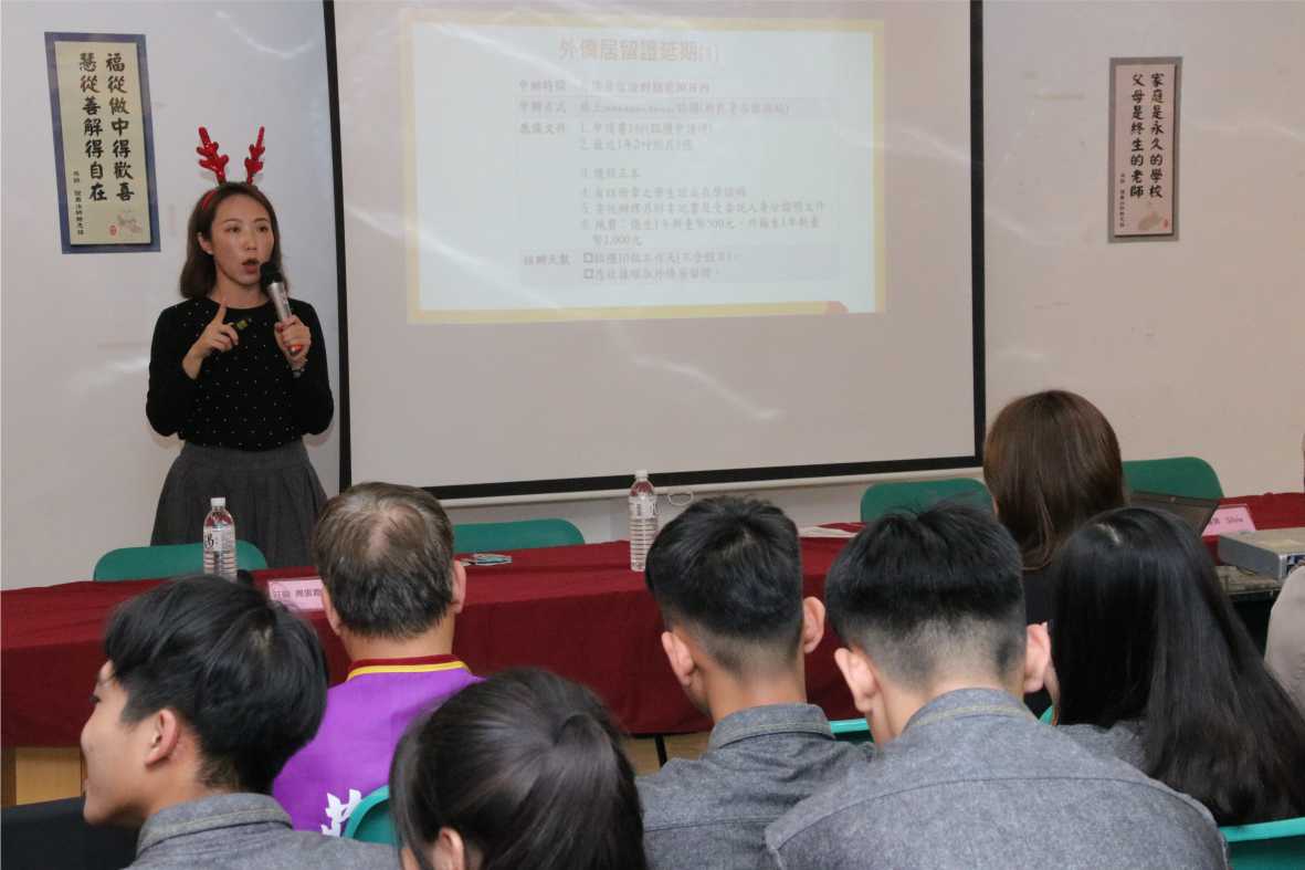 戴著紅色「麋鹿」髮箍的曾潔如,告訴外生們在臺打拚不「迷路」,莊敬高職深耕職校教育,學校有演藝科、影視科、餐飲科、美容科、流行服飾科等專業科系,吸引相當多的外籍學生,移民署希望提供正確資訊讓學校及學生們知道,讓新住民學子將來能安心居留。