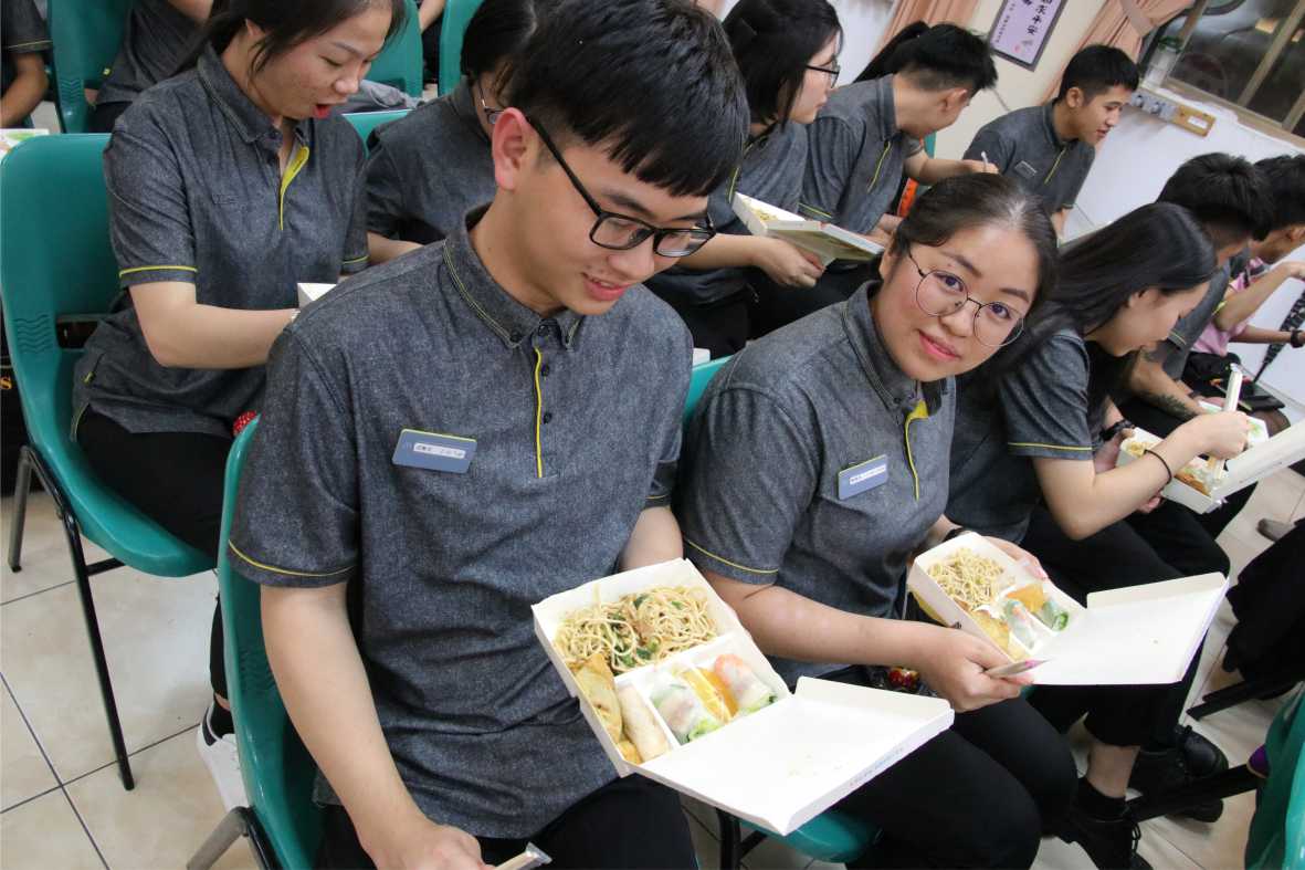 本次活動餐點很特別,有來自越南新住民陳秋柳及緬甸的新住民張麗英,帶來越南傳統生春捲、炸春捲及緬甸傳統咖哩三角包、緬甸風味家鄉麵,溫暖異鄉遊子的胃,學生吃到家鄉味食物的時候,既驚訝又開心,還眼眶泛紅。陳秋柳及張麗英也用越南語及緬甸語,向在場的越南及緬甸籍學生親切問候「聖誕快樂」!