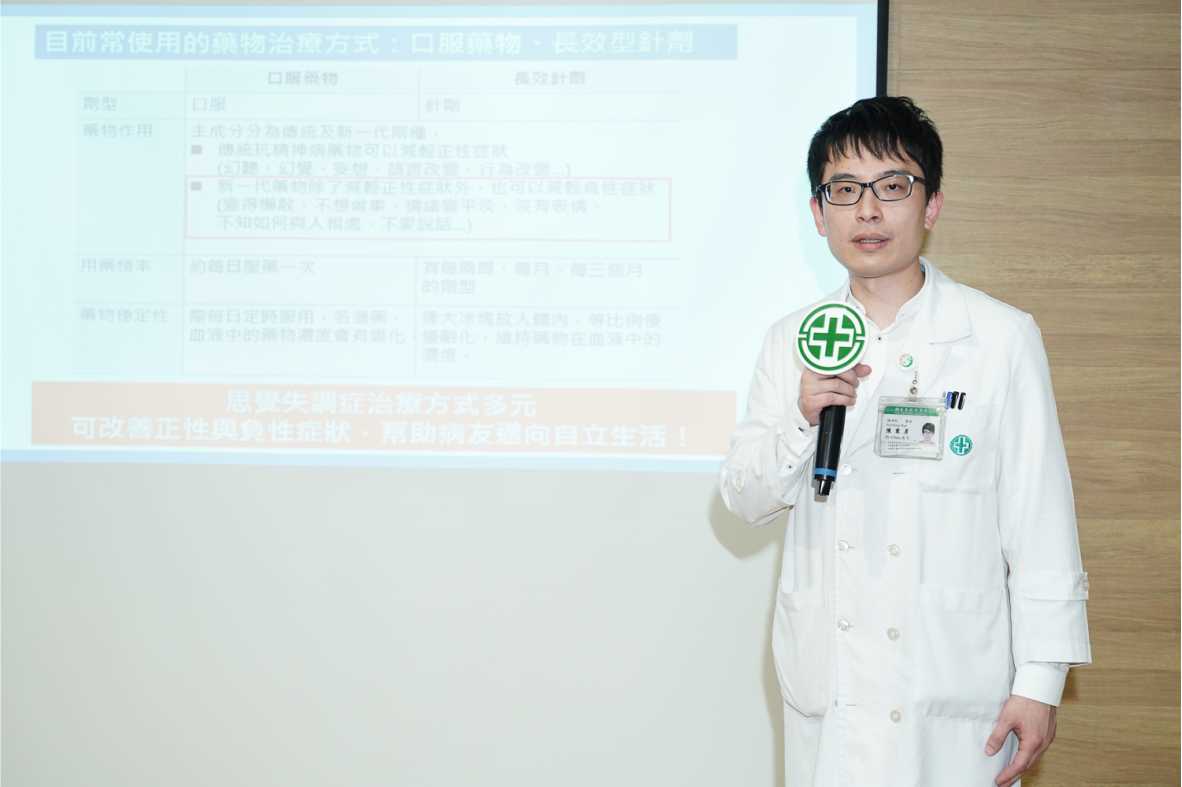 陳秉彥醫師分享,隨著時代進步,現在思覺失調症的藥物已有口服及長效針劑等不同的選擇,口服藥物需每天服用,而長效針劑則依施打頻率有2周、1個月及3個月三種不同類型。長效針劑可以讓藥物在體內緩慢釋放,延長藥效,維持對腦部功能的保護。研究顯示,使用新一代長效針劑的病友,有1/2以上的病友在個人與社會功能的表現上有顯著的成長,且對於及早使用(被診斷為思覺失調症5年內)的病患,更為有效!