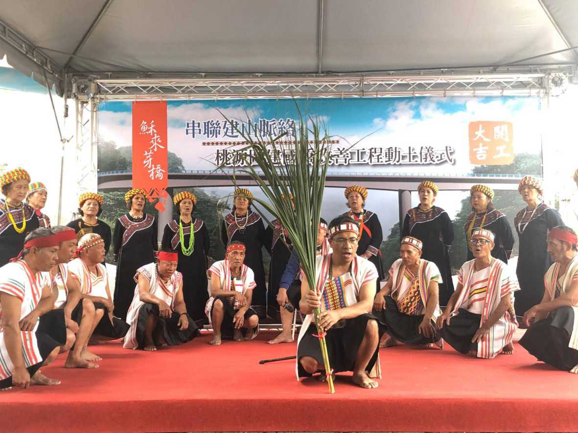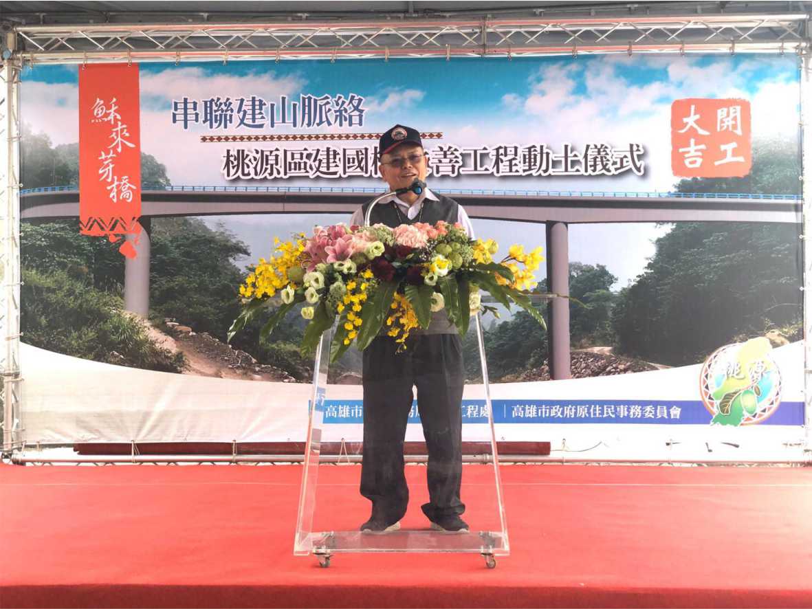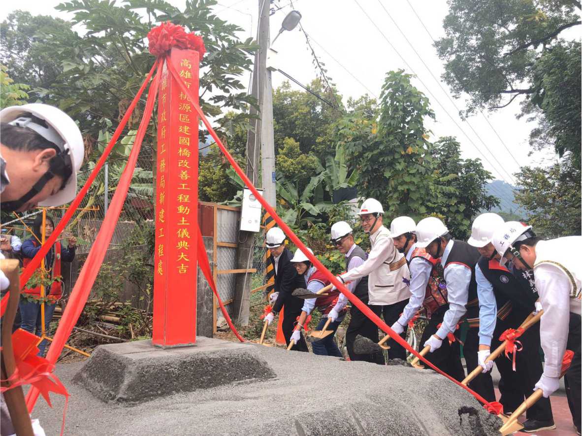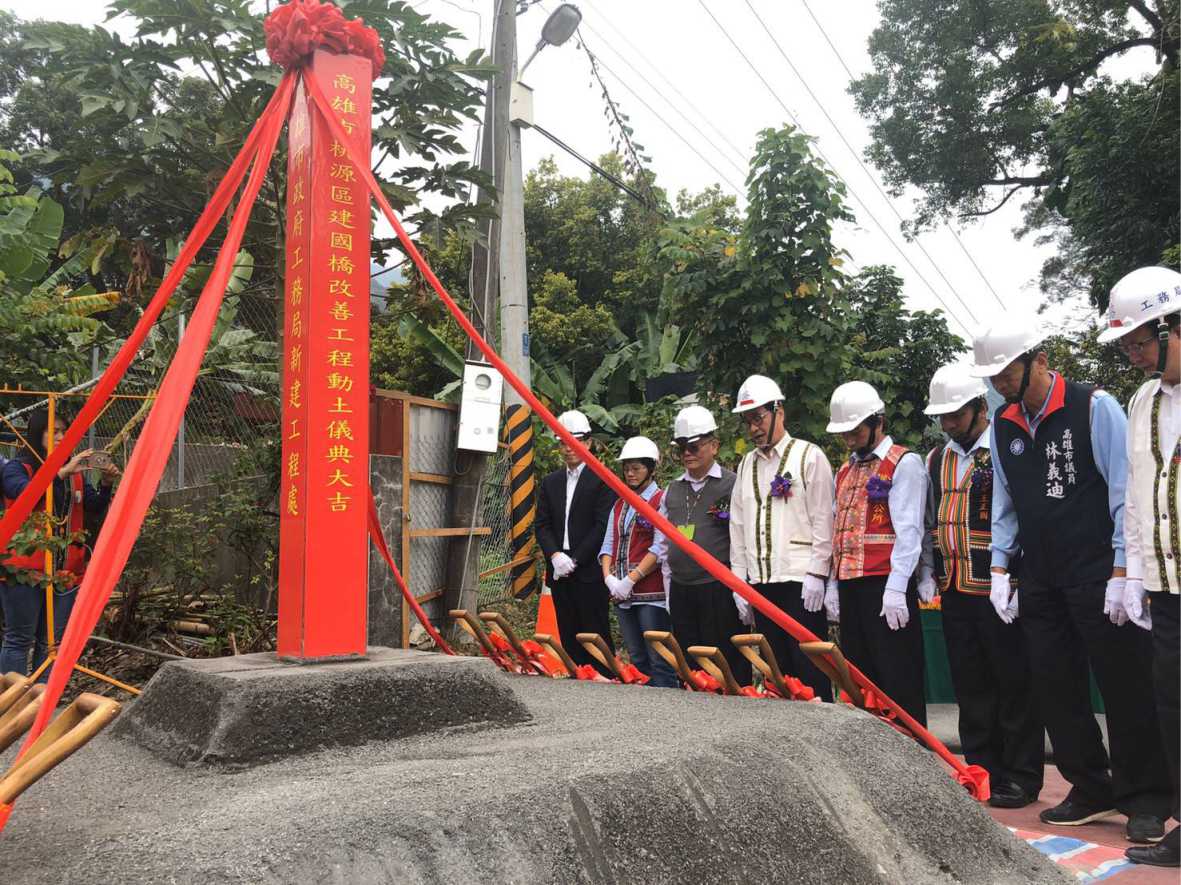 原住民族委員會補助高雄市政府辦理建國橋改善工程,將提供建山部落居民一條安全回家與農作往返的道路,舉行開工典禮,由原民會阿浪‧滿拉旺主任秘書、高雄市李四川副市長、桃源區謝英雄區長等地方代表共同持鏟動土。