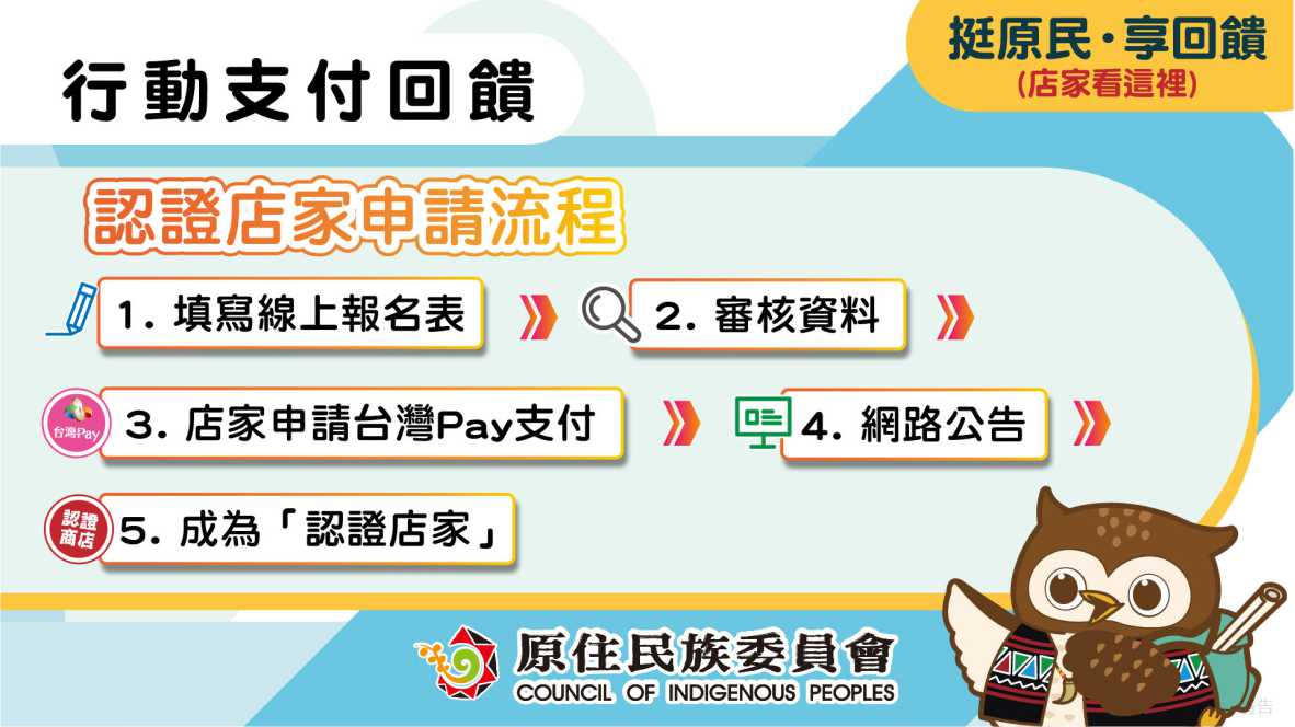 原民會表示,受疫情衝擊,各地遊客銳減、商圈店家生意大受影響,為振興原住民族產業經濟,促進國民旅遊至原住民族地區內需消費,並響應國家行動支付政策,推出「行動支付回饋」。(8)日開始受理認證店家報名,俟疫情趨緩配合經濟部推COUPON券方案時間啓動消費者行動支付回饋,補助國人前往原民會認證店家之消費回饋,每筆消費滿100元即可獲得50元現金回饋,每筆最高回饋500元,盼能增加原住民族業者的營收,以協助原住民族業者儘速度過難關。