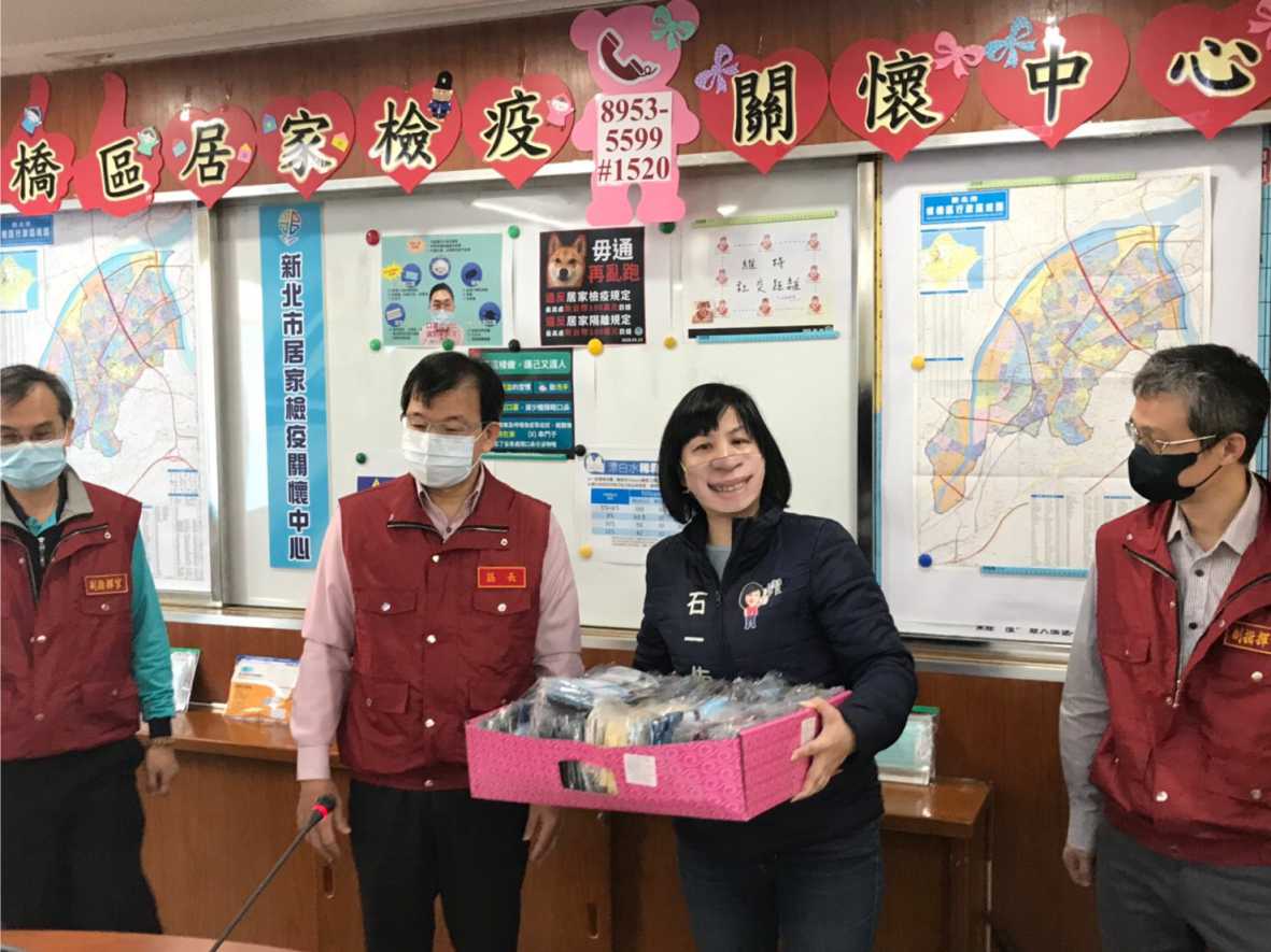 板橋區長林耀長代表受贈表示,感謝板橋愛心慈善會捐贈物資,將分配給區公所里幹事、防疫志工等,延長醫療口罩使用時間,每天更換清洗口罩套,更衛生安全。