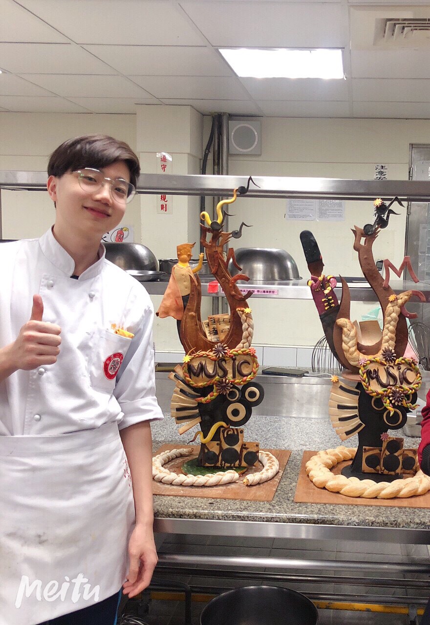 麵包製作選手蕭瑜萱首次參賽,一直以來對自己很沒自信的她,透過比賽讓她漸漸找到自信心,很多選手可能很早就已經在為比賽做準備,而瑜萱是從這個寒假才開始接觸藝術麵包,這段時間她從一無所知,到現在能做出完整的一座作品,這都要感謝這段時間幫助她的師長,雖然一路走來遭遇許多挫折,但也因為這些挫折讓她能夠成長進步。