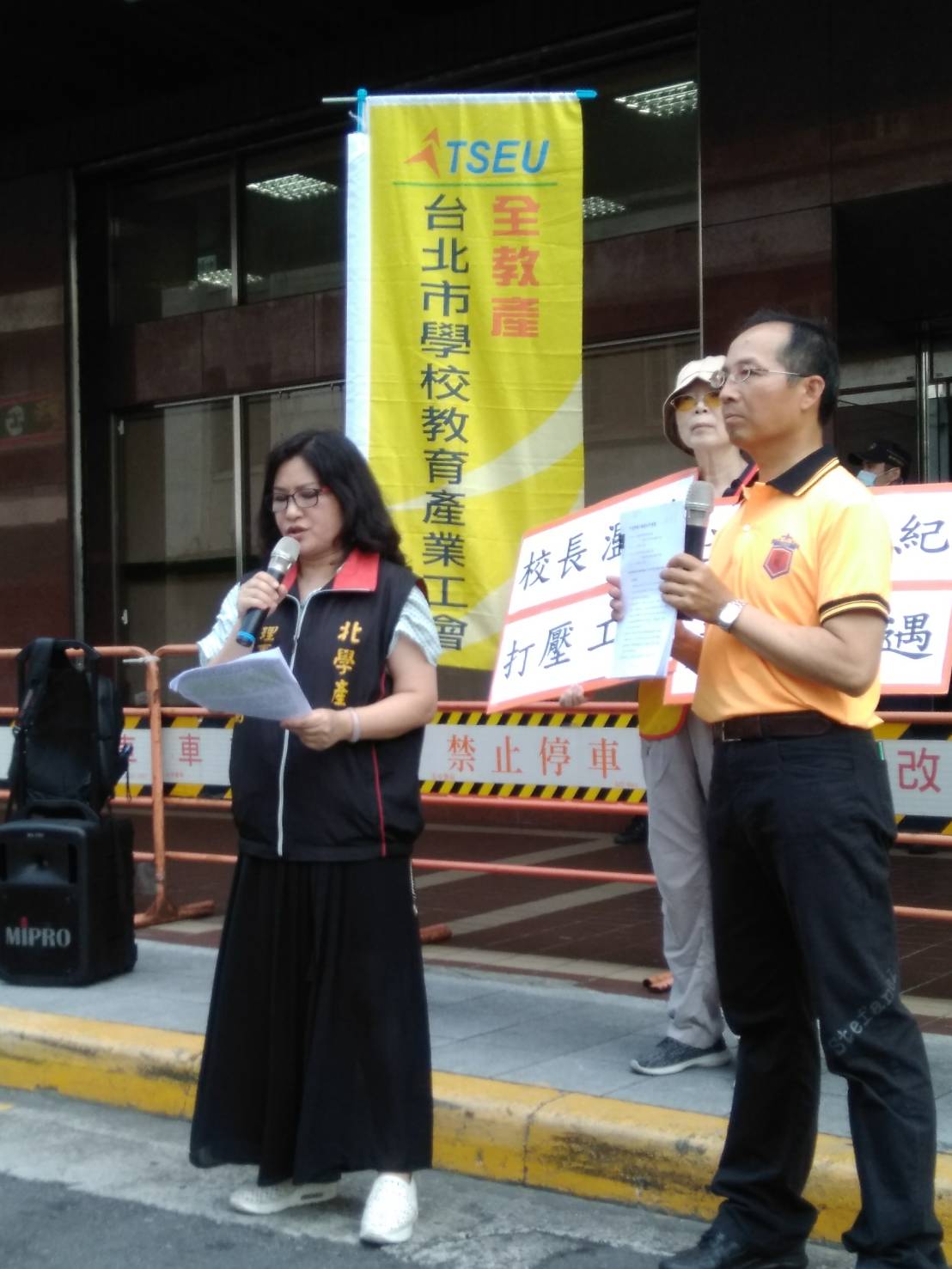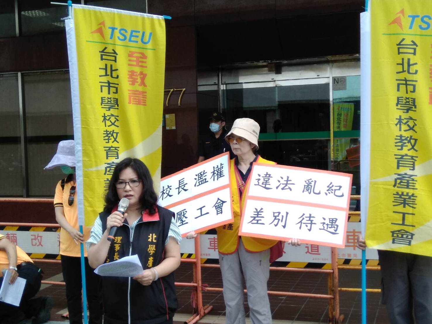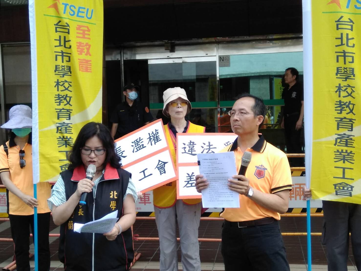 臺北市士林國小初任校長吳明郁,就臺北市學校教育產業工會(簡稱:北學產) 自108年7月9日起依法規正式函文擬付費申請供士林國小支會發展會務使用的非獨立專屬之共用會所,及本工會副理事長自籌支付代課費之符合工會法規範的會務公假,共計6份函文及秘書長、理事長多次先以電話聯繫協商事宜,該校均以倨傲姿態不予理睬回應,遲至109年4月6日經臺北市政府教育局督促,才以至屬無稽且答非所問理由拒絕。明顯違反行政程序法第51條及公務員服務法第7、第22條推諉稽延行政責任,並構成工會法第35條第1項第5款不當勞動行為。法治國度下本應依法行政的平等校園,仍有帝治獨裁式恣意濫權裁量!吳校長法治知能薄弱、識「法」為無物,恣意濫權、造謠生事、挑撥離間,其倨傲行徑慣習不利的差別對待打壓「北學產」,本工會遂依法向勞動部申請不當勞動行為裁決,期求定紛止爭之救濟管道。