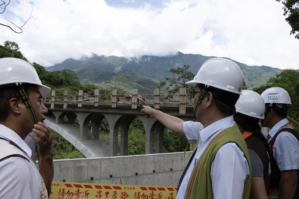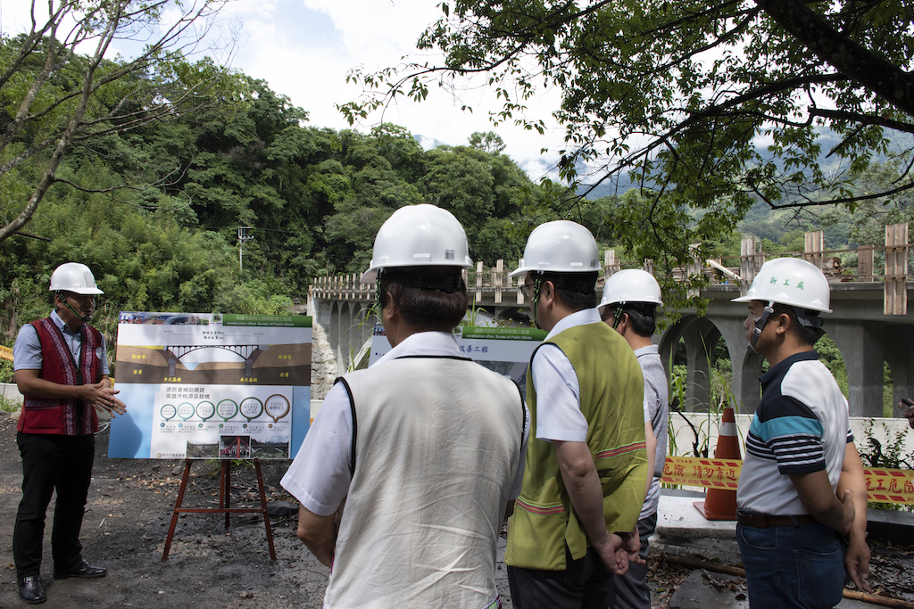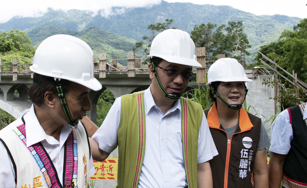 原住民族委員會為瞭解高雄市桃源區公共工程執行情形,由夷將·拔路兒Icyang·Parod主任委員率相關業務主管訪視高雄桃源區龍橋重建工程執行進度,伍麗華立法委員也到現場關心。
