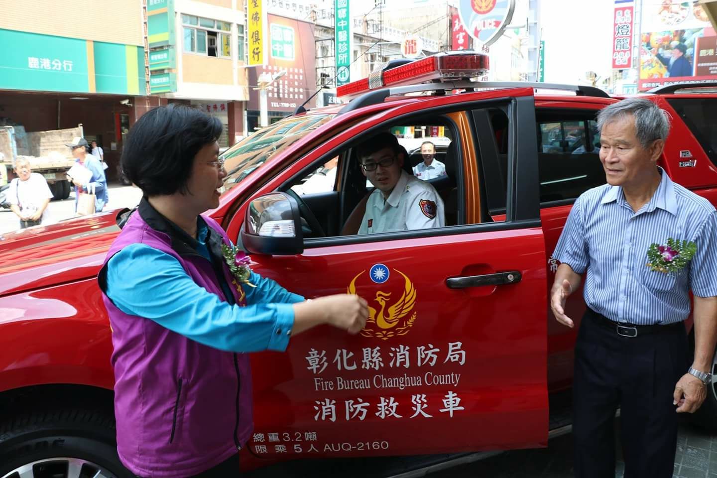 這次不僅捐贈消防警備車,還捐贈空拍機、Q CPR教學安妮、 防震型血壓機等,涵蓋了救災、救護及預防三層面的消防器材,大幅提升鹿港消防的救災救護能力。