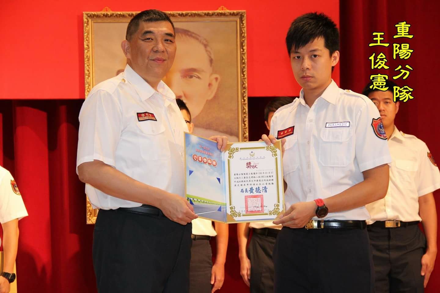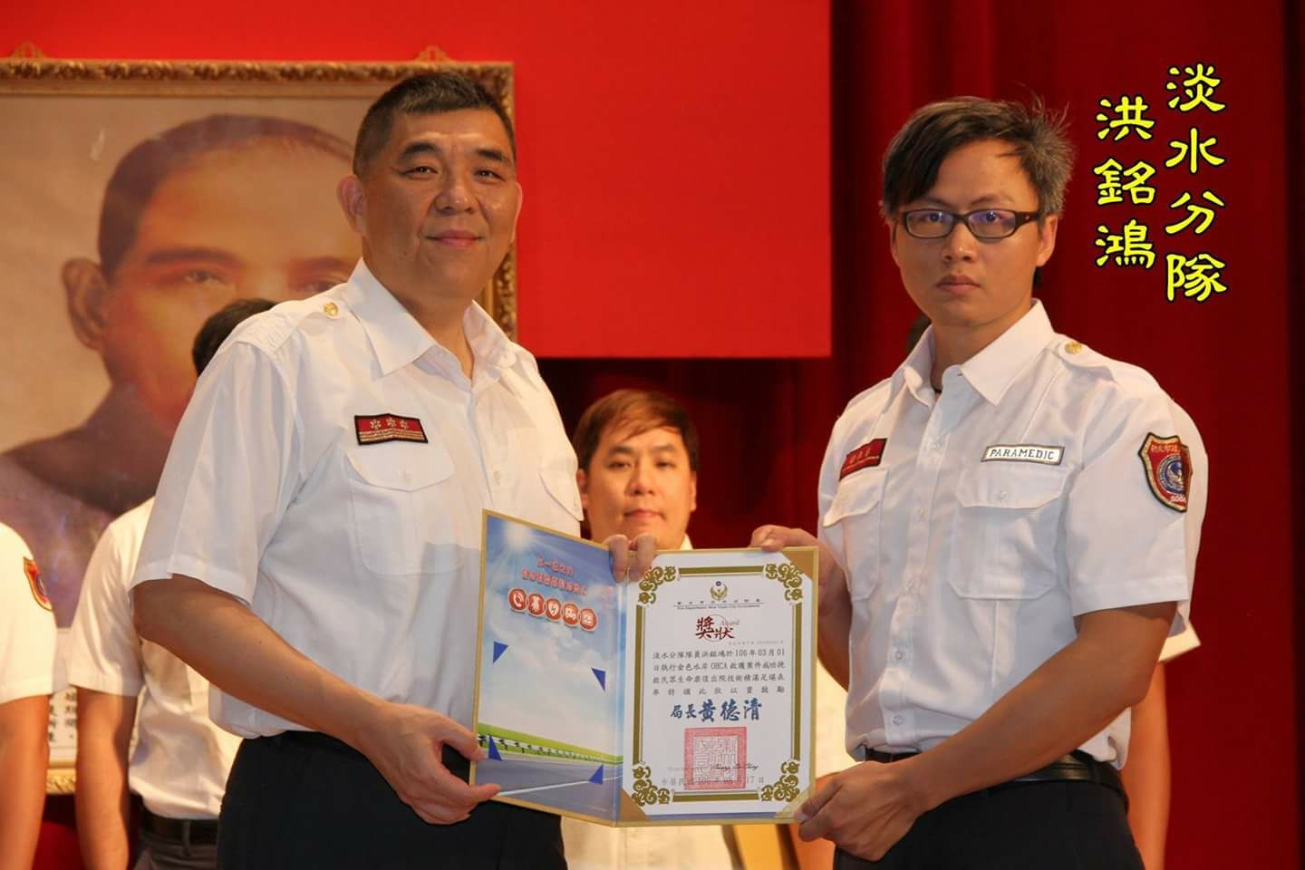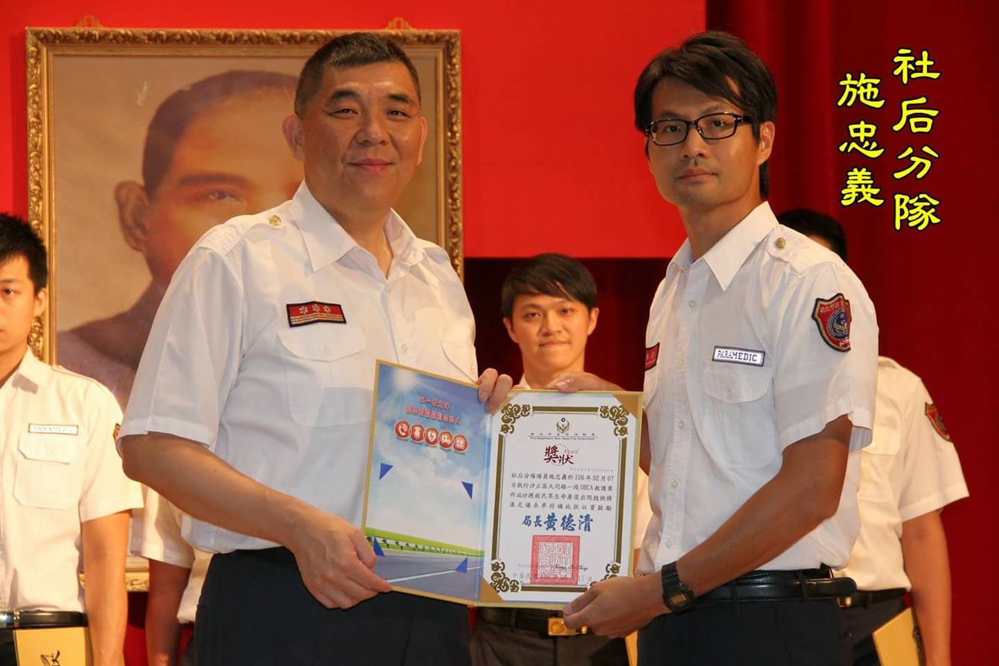 新北市消防局長黃德清表揚救護的同仁