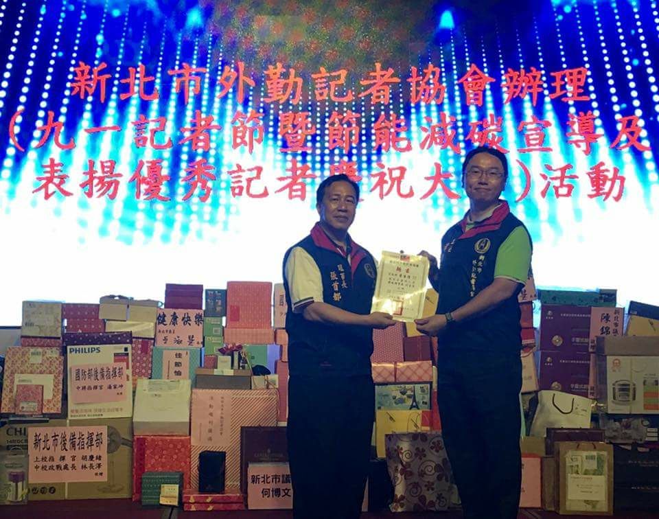 新北巿外勤記者協會慶祝9/1記者節,於106年9月3日,假三峽區(鼎上食府餐廳)舉行表揚優秀記者大會,新北巿外勤記者協會 張理事功不可沒。