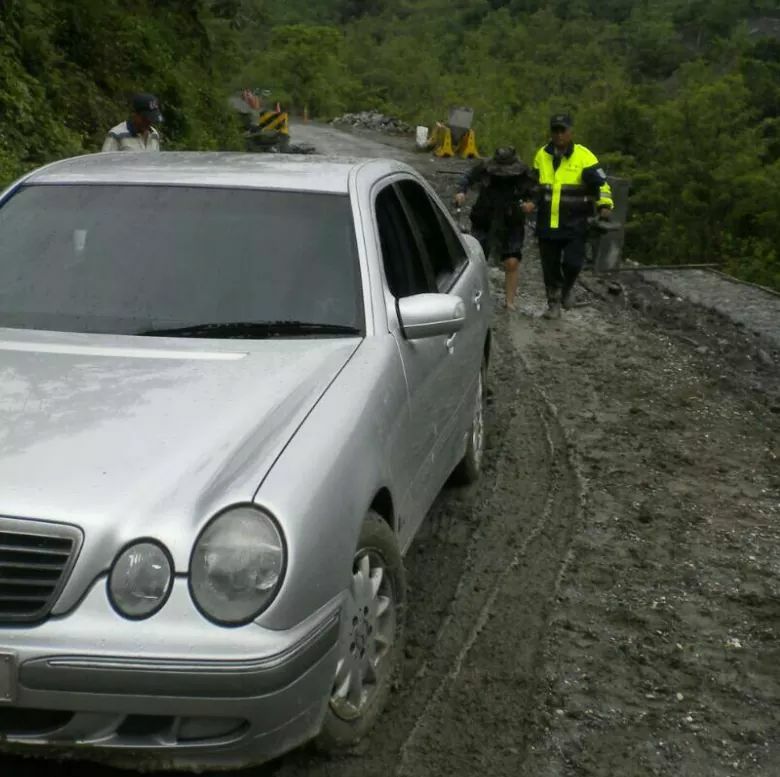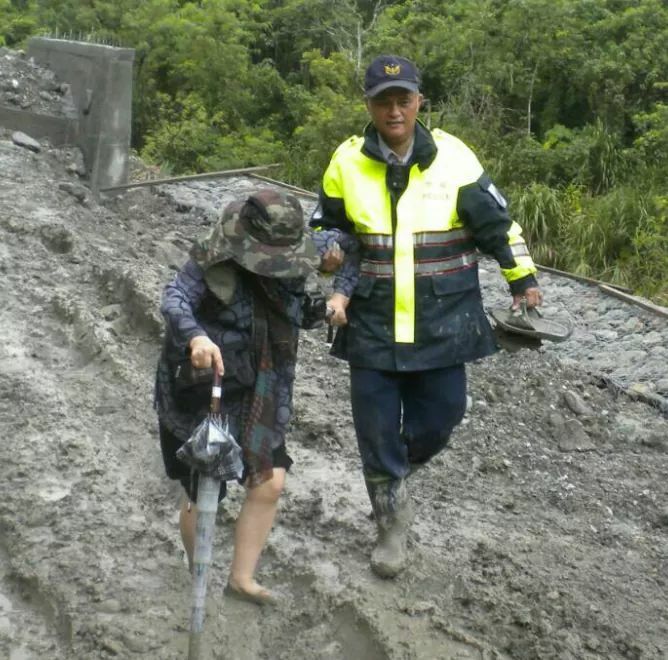 來自新北市的老夫妻,因聽友人談起臺東縣197縣道風景優美,於是駕車前來遊玩,兩人沿線欣賞自然美景,未注意到前方道路狀況,行駛至197縣道26.4公里處時,因地面泥濘且車道縮減,車子就突陷泥淖中「動彈不得」,兩人呆坐車內不知所措,只好請求警方援助!瑞源派出所警員王金財及胡德義接獲通報後隨即趕赴現場,此時天還下著小雨,道路更加泥濘,除增加救援難度,也考驗者員警駕駛技術!到達現場看到該車車胎深陷泥淖中,駕駛人站在車外等待救援,王員穿著雨鞋踩過泥濘將受到驚嚇的兩人攙扶下車安置至安全處,並安撫兩人情緒,員警亦聯繫拖吊車前來拖吊,順利將車輛拖至安全區域,隨後由警方護送兩人下山,圓滿完成即刻救援任務!老夫妻非常感謝警方的幫忙,而且以後駕車出門遊玩,會先查詢道路狀況,避免再次「被救援」,再次感謝警察的熱忱及貼心!