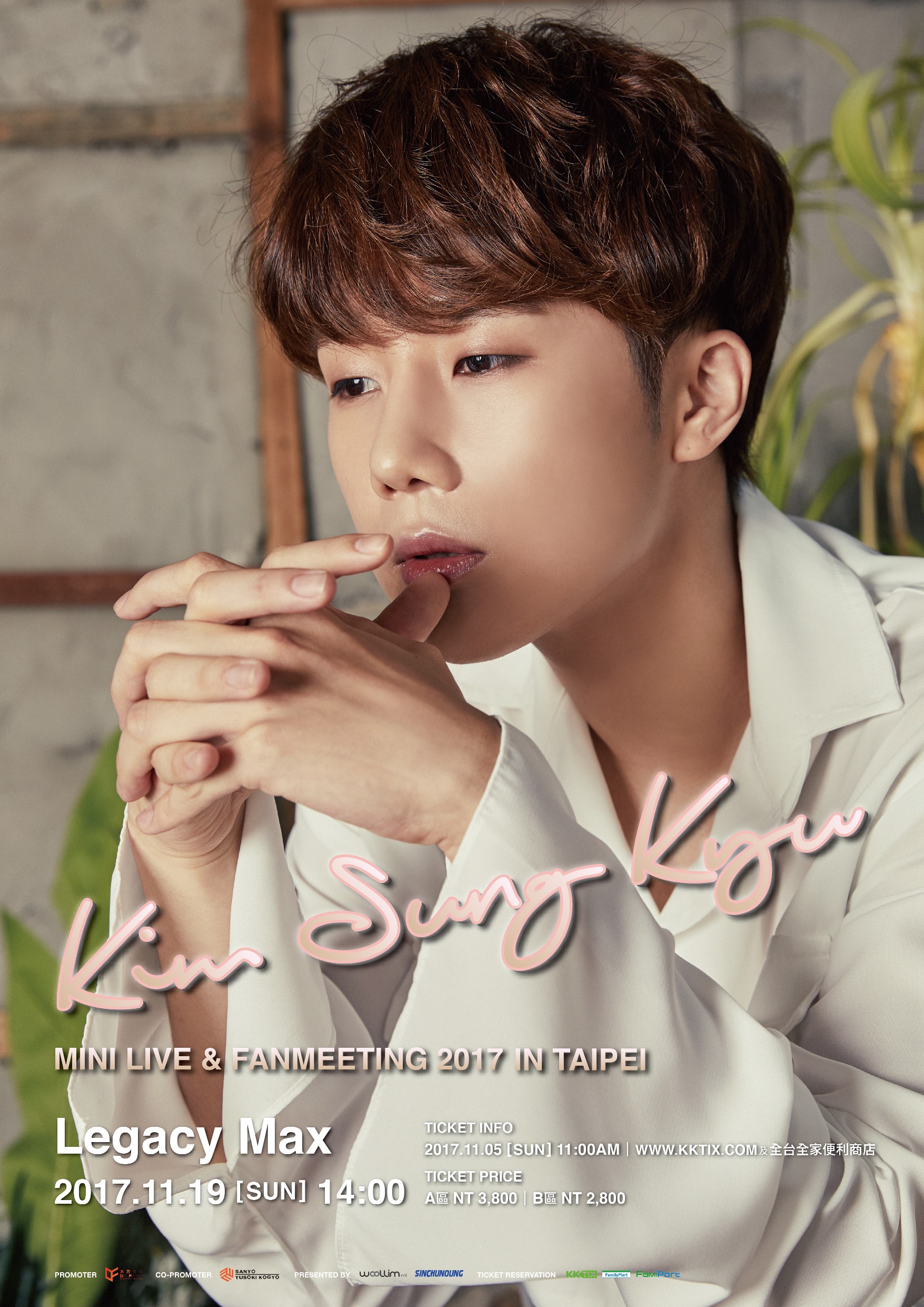 韓國頂級天團「INFINITE」隊長金聖圭,11/19即將來台舉辦「KIM SUNG KYU MINI LIVE & FANMEETING 2017 IN TAIPEI」見面會,上個月初首次開票所有票券便即刻完售,粉絲們紛紛留言求票,表達希望可以有機會參與到這次活動,進場看到聖圭精彩表演的熱切願望。經過多方共同努力,終於確認加開11/19下午2點場次,加場票券將於11月5日(日)上午11點於KKTIX及全台全家便利商店開賣。