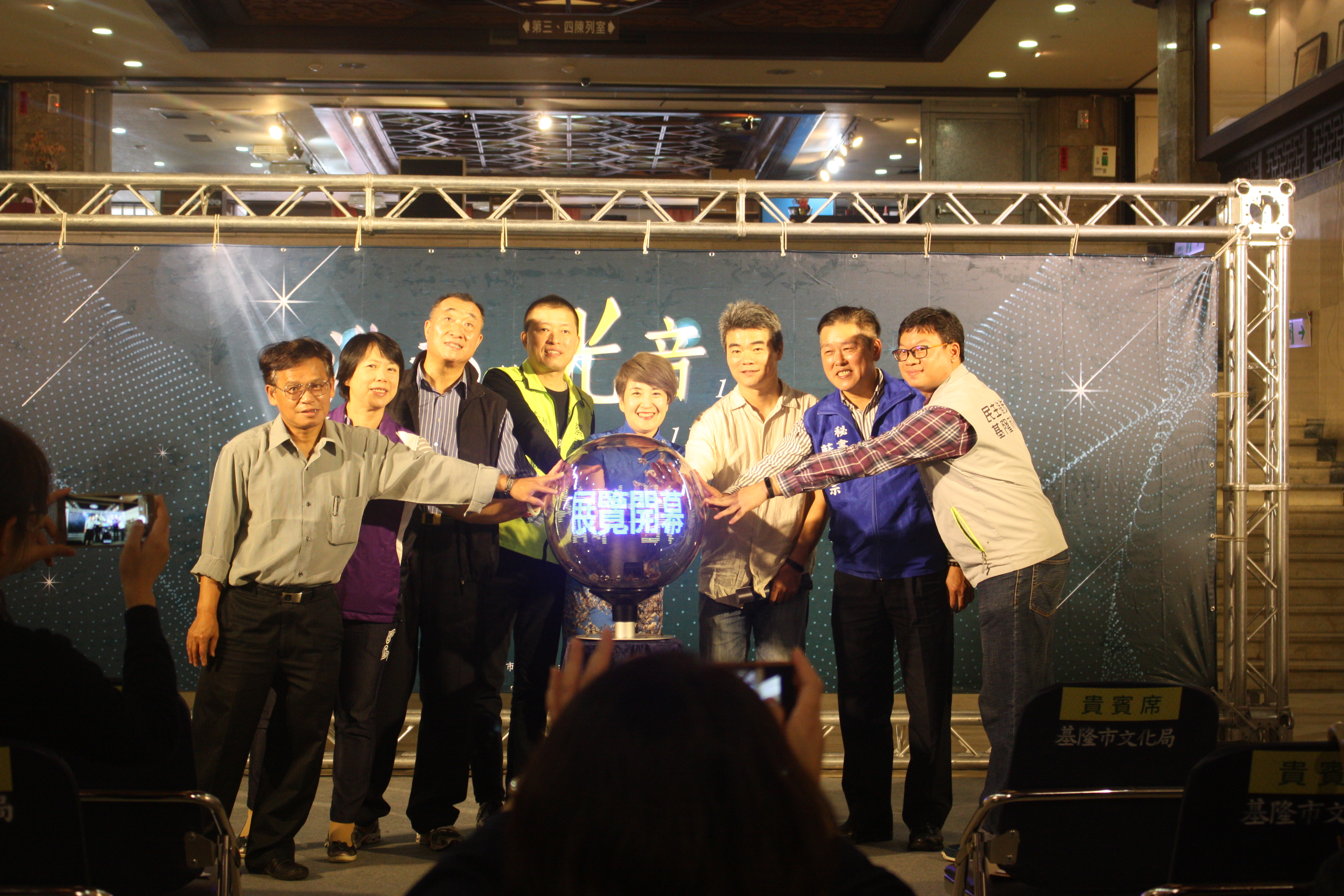 主辦單位特別設計長官貴賓共同啟動光球,點亮大廳作品秀出光影變化展區,接著再由策展人宋璽德老師,帶領大家導覽此次展示作品。本檔展覽是基隆文化中心大廳歷經整修後的第一檔大型展覽,寬敞的空間表現了城市的外貌與內涵。邀請宋璽德、王福瑞、黃心健3位藝術家,透過光與聲音以及影像互動裝置邀請民眾觀看日常居住的城市,希望藉由本次展覽的策劃與大家分享基隆的多樣風貌。