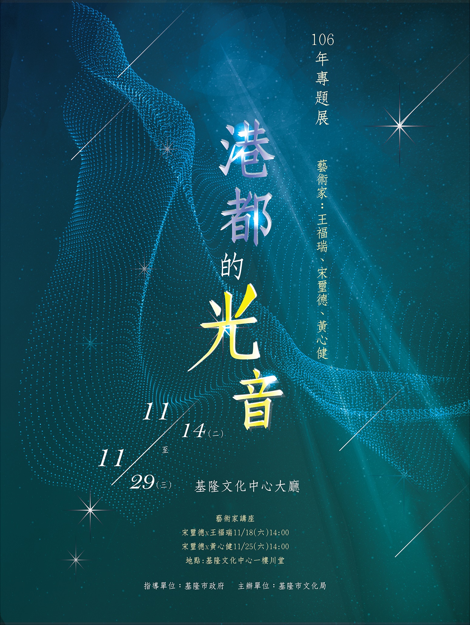 基隆市文化局的年度特展「港都的光音」即日起至11月29日止,在基隆文化中心大廳展出,今日特別舉辦展覽記者會,邀請市政議員、長官回味起在地的「光音」,除了期待能用藝術文化創造新文化亮點外,也能重新活絡這個港口都市。
