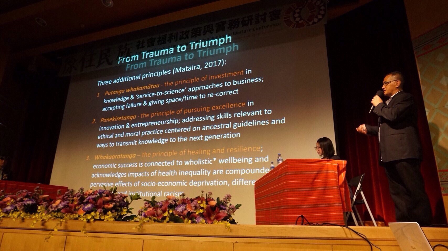 又為汲取他國社會福利服務經驗,特別邀請到2位同屬南島語族的紐西蘭及斐濟專家學者Dr. Peter Mataira及Elenoa Vakabunoya Nimacere,發表專題演講,分享原住民族社會工作及原住民族觀光與就業的發展經驗,提供跨國案例及思維。