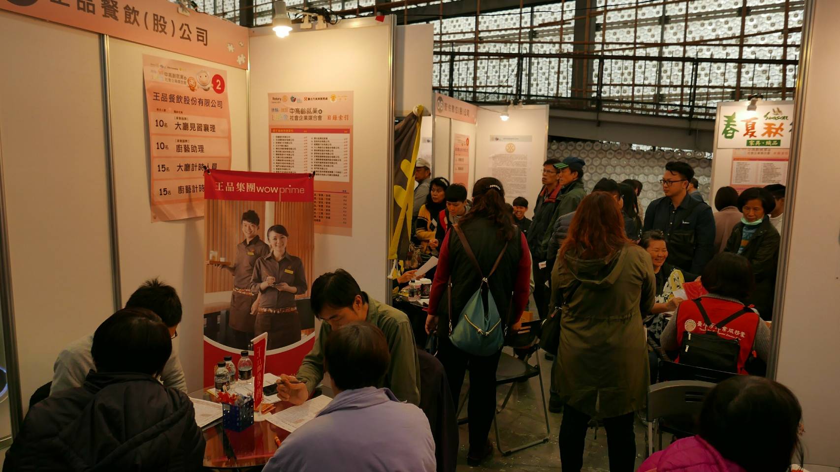 臺北市就業服務處指出,現場浩鑫股份有限公司應徵人數眾多,該公司為全球第一迷你電腦製造商、具一定知名度,本次浩鑫提供多元的照顧服務產業相關工作職缺,排隊人潮擠爆現場攤位。浩鑫表示具備相關專長的民眾優先錄取,其中照顧服務管理員職缺更搭配公司最新推出的居家照顧機器人搭配服務業主,吸引很多中高齡求職的眼光。再者是康泰保全股份有限公司,駐點保全及客服人員最多人求職,希望有熱誠及經驗的求職者前來應徵。睿連環境工程招募的行政人員與管理幹部等職缺,吸引大批民眾前來投遞履歷。王品餐飲則是以大廳見習襄理及廚藝助理等工作最吸睛,公司表示這次相當多中高齡民眾來攤位應徵,很感謝臺北市就業服務處這次舉辦「中高齡就業暨社會企業媒合會」,公司也會針對前來應徵的求職者做班次調整,需要照顧家裡年幼小朋友可以來應徵假日班,希望配合度高的民眾可以加入這個大家庭。