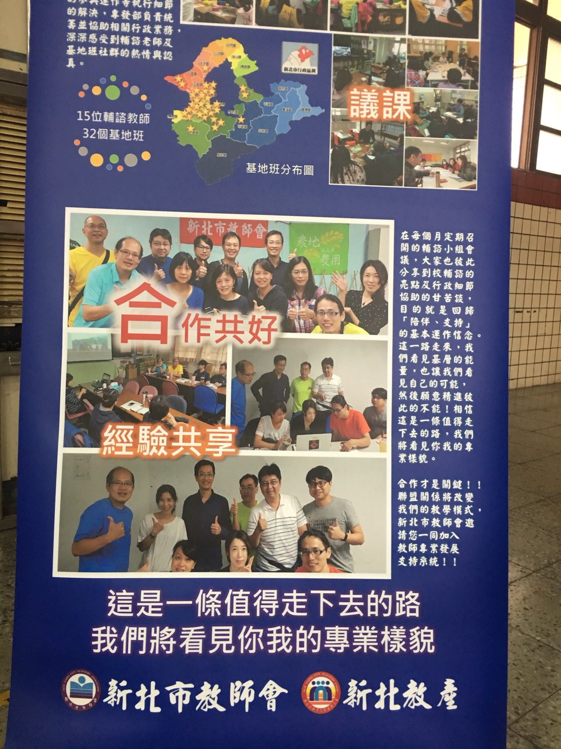第一期自 106 年 2 月至 7 月,辦 理至少超過 20 場的輔諮教師培訓研習,號召成立了近 150 個基地班;今天在新北市 辦理的第二期期中成果發表會,除靜態展示 230 個基地班實作心得與成果,更邀請 8 位輔諮教師或基地班成員,分享這一年來共備、觀課、議課的具體實踐過程,展現 以教師為本位的專業成長。 擔任與談人的輔諮教師許志文說,今天展現的就是「由下而上」的專業動能, 創新、翻轉不是我們的目的,攜手前進就會留下印記。目前任職於蘆洲國中的輔諮 教師蔡惠娟,分享帶領基地班的經驗,她強調,支持系統過程帶來的是自省,是共 好,是喜悅,是和諧,是自然精進且水到渠成。當共備成為日常,翻轉、創新,自 然就在教室的某個角落醞釀產生。