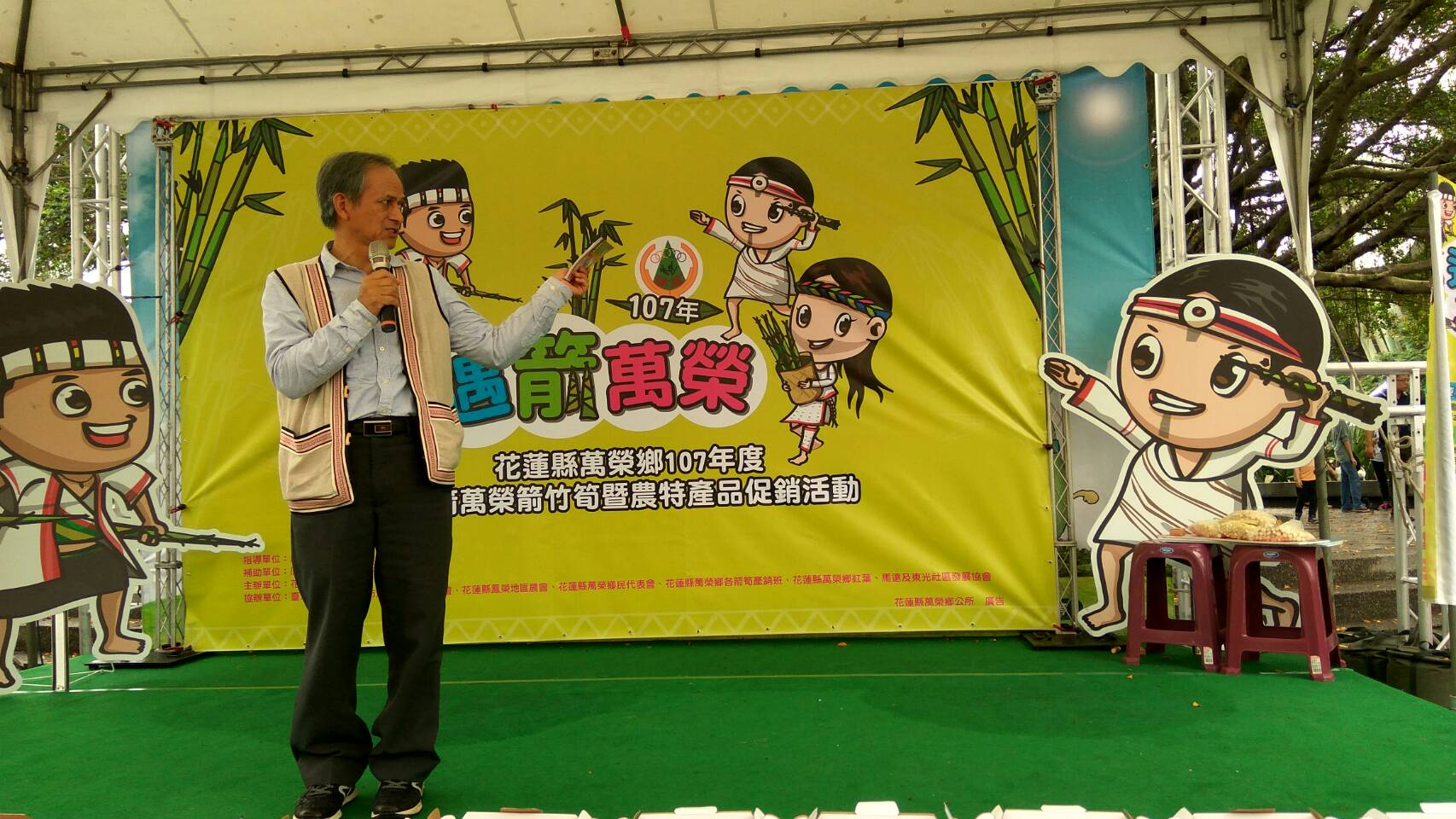 原住民族委員會補助花蓮縣萬榮鄉公所辦理「萬榮鄉107年度『遇箭萬榮』箭筍促銷展售活動」,在臺北花博圓山廣場發佈會,原住民族委員會太魯閣族吉洛.哈簍克Jiru Haruq委員代表出席共襄盛舉。