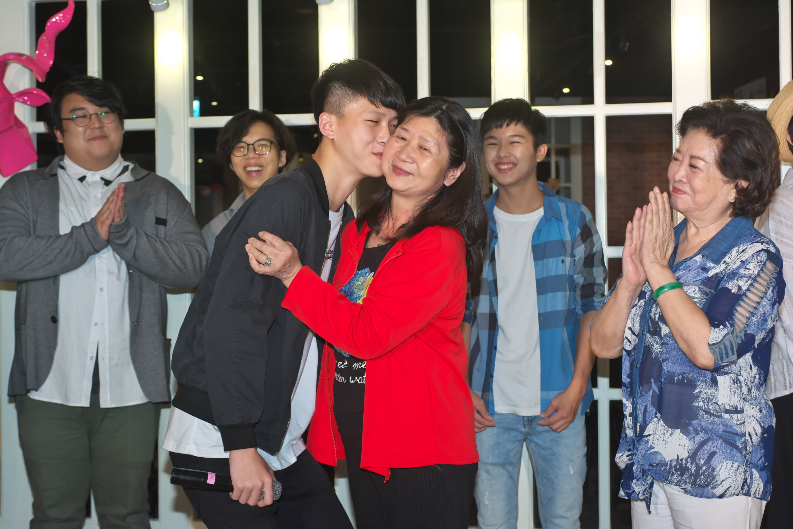 記者會上,「雙面少年」微電影主要演員們,也共同聯手打造「巨型御飯糰」,替心納家庭加油打氣,演員楊震表示:每個孩子就如同是一粒小米飯,但只要他們團結,就可以成為具存在感且富有能量的大飯糰!故事主角原型人物蕭力誠說:相信有大家的幫忙,紅心字會「御飯團」的生命故事,可以更快被傳開!