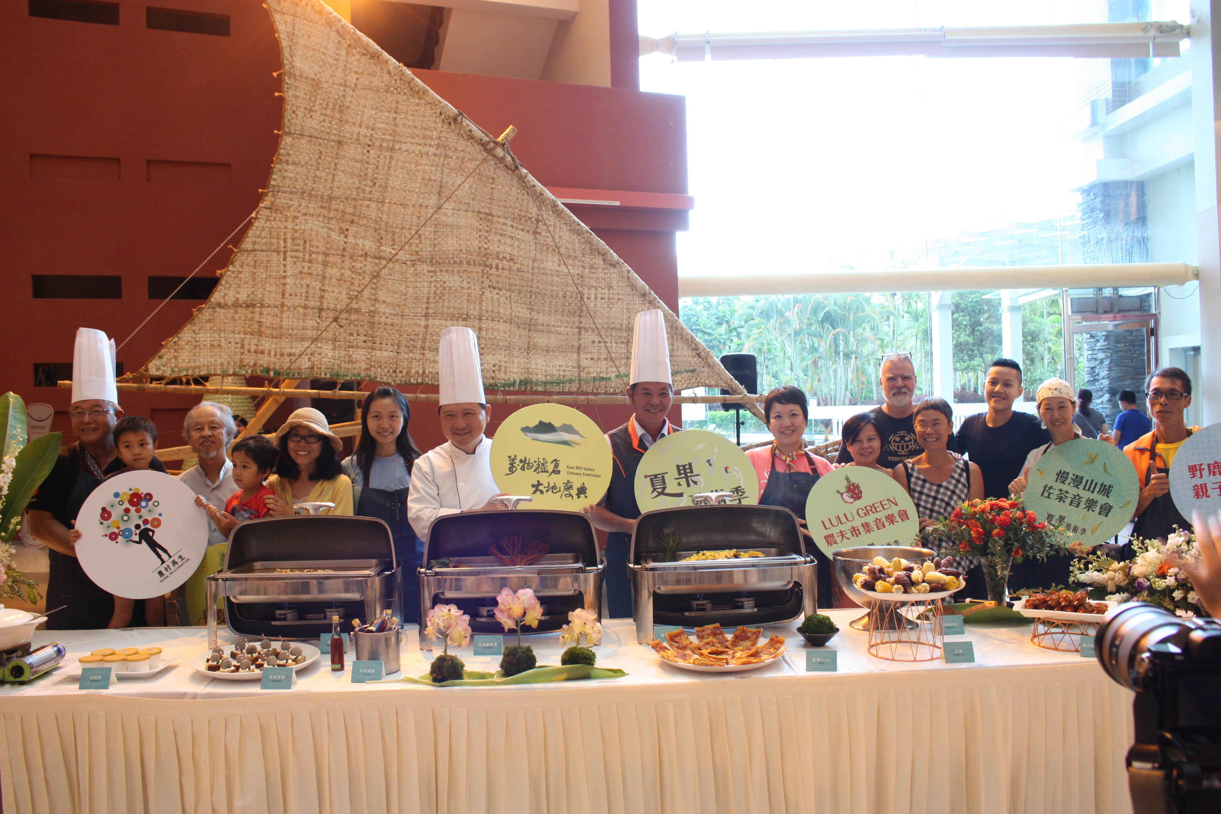 水土保持局臺東分局與鹿野鄉公所於台東鹿鳴溫泉酒店舉辦「萬物糧倉大地慶典」-夏果藝術季系列活動啟動記者會,會中邀請鹿野地區店家利用在地時令食材,創造一道道美味佳餚,並請與會貴賓一同揭開特地為夏果藝術季製作的三道尚未公開過的神秘料理(鳳梨拌飯、酸魚湯及香蕉咖哩雞),象徵夏果藝術季正式開跑。水保局臺東分局分局長王志輝表示,為了讓遊客暑假期間到臺東旅遊,除了參加聞名世界的臺東國際熱氣球嘉年華外,更深化與在地的連結,推出今夏限定的鹿野鄉間深度體驗。活動將串連鹿野各社區特色並結合國際資源,設計五感體驗旅遊,邀請民眾感受在地生活。除了可以深度參與農事日常,也將注入藝術能量,聽在地音樂人說在地故事,今年夏天,一起感受不一樣的臺東風情!