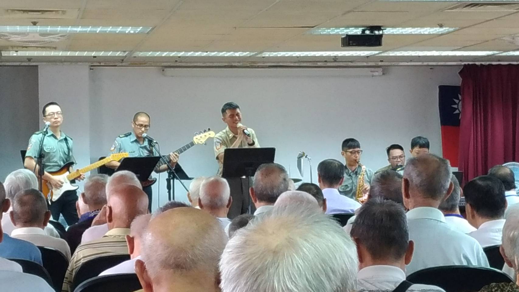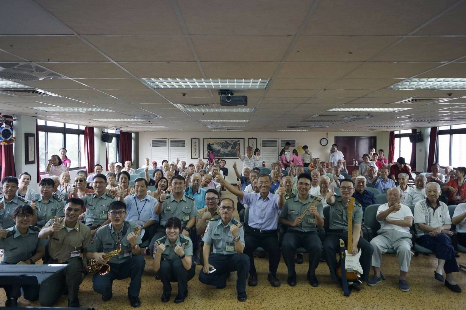 8月29日國防部示範樂隊一行11人至八德榮家進行公益演奏音樂會,為榮民長者演奏多首令人懷念的經典金曲,長輩們陶醉在熟悉的歌曲旋律,享受了一場難忘的音樂饗宴。