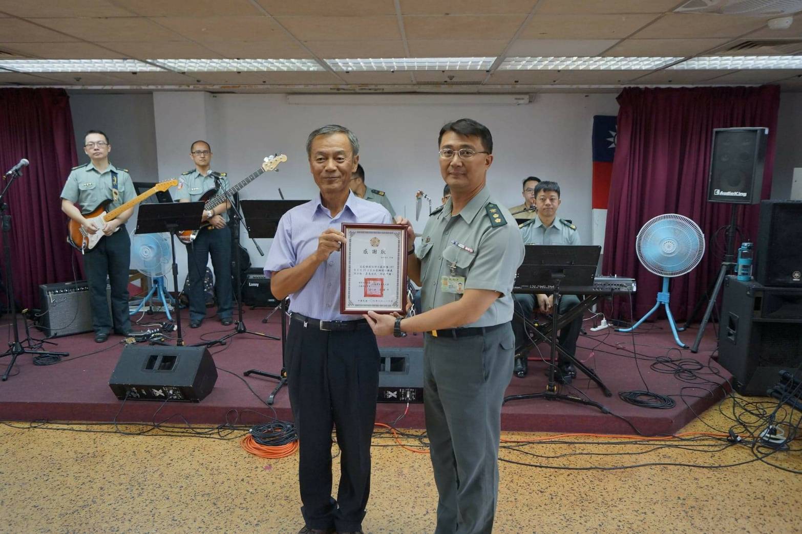 八德榮家古道中主任表示,感謝國防部示範樂隊前來榮家公益演出,國防部示範樂隊為國家極具水準重要音樂單位,該樂隊運用流行音樂元素結合懷舊樂曲,讓長輩聆聽活潑悅耳音樂,透過熟悉的旋律刺激記憶力,懷舊之餘還能安撫身心靈。節目後段三位長輩還上台與樂隊高歌,該榮家非常感覺謝示範樂隊悠揚的精神食糧,傳達愛心並帶來滿滿的正能量。