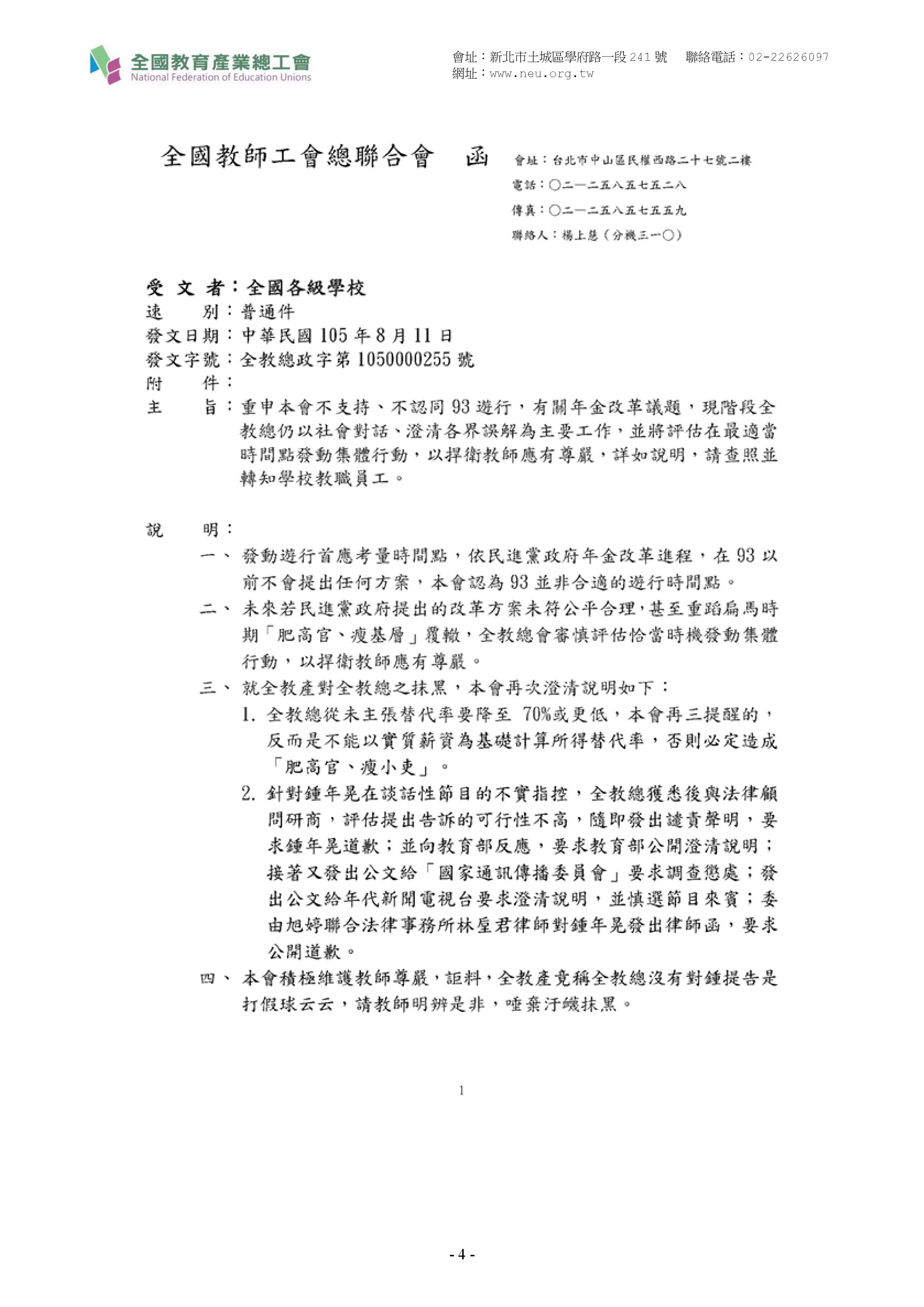 【全國教育產業總工會】要提醒【全教總】勿忘初衷,工會存在的目的是在維護勞方的工作權益,並由工會負責與資方談判以獲取會員最大的勞動環境改善,而不是與資方(政府)合作,共同壓榨會員權益。同時也請全國教師睜亮眼睛,這樣的工會難道還有繼續生存的必要嗎?