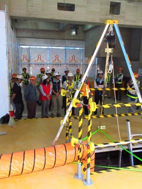 本次活動全方位展示感電、局限空間、高處作業等多項災害預防安全設備。為預防感電危害,勞動部已公告指定自今(107)年7月1日起交流電焊機使用之自動電擊防止裝置,製造商應經型式驗證合格並張貼合格標章,勞檢處於本次活動率先展示符合國家標準CNS 4782之自動電擊防止裝置;鼓勵與會事業單位汰舊換新,使用更安全更先進之設備機具。另針對作業勞工於局限空間作業區域常超出監視範圍,勞工一旦發生缺氧或中毒之災害時,往往因未即時發現而錯過黃金搶救時間,而今日展示供勞工佩戴可偵測人員活動情形之生命感知器設備,一旦發生災害便能於第一時間發出通報,迅速使搶救人員採取必要緊急措施。另外在鋼構高處作業部分,陳列專用鋁合金安全走道,具重量輕、架設免用吊車、踏面平整、材質防鏽等優點,克服傳統橫跨鋼樑時設置施工踏板易生墜落缺點。