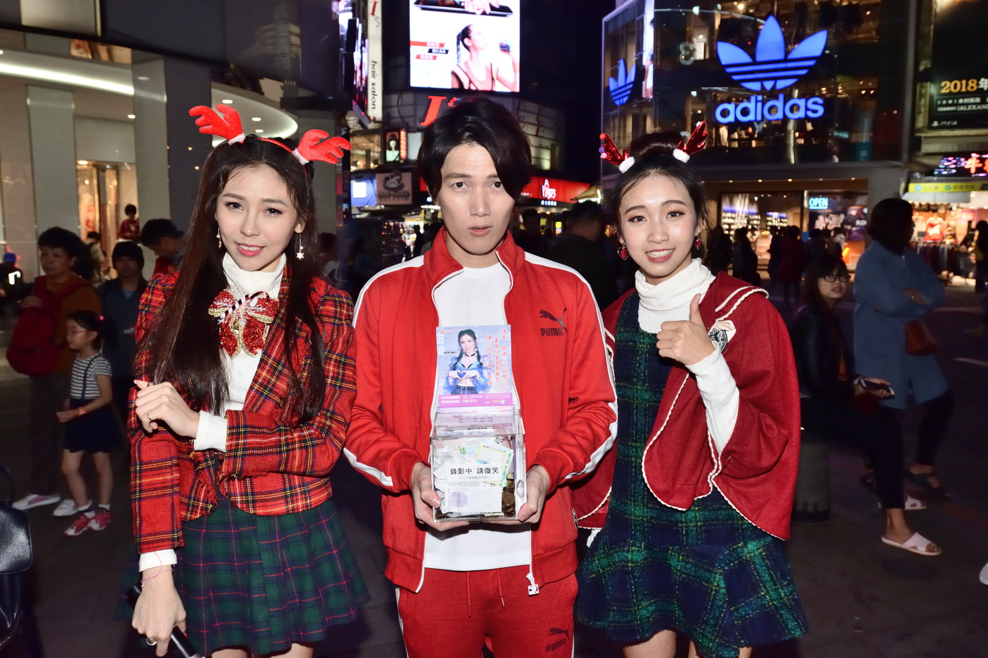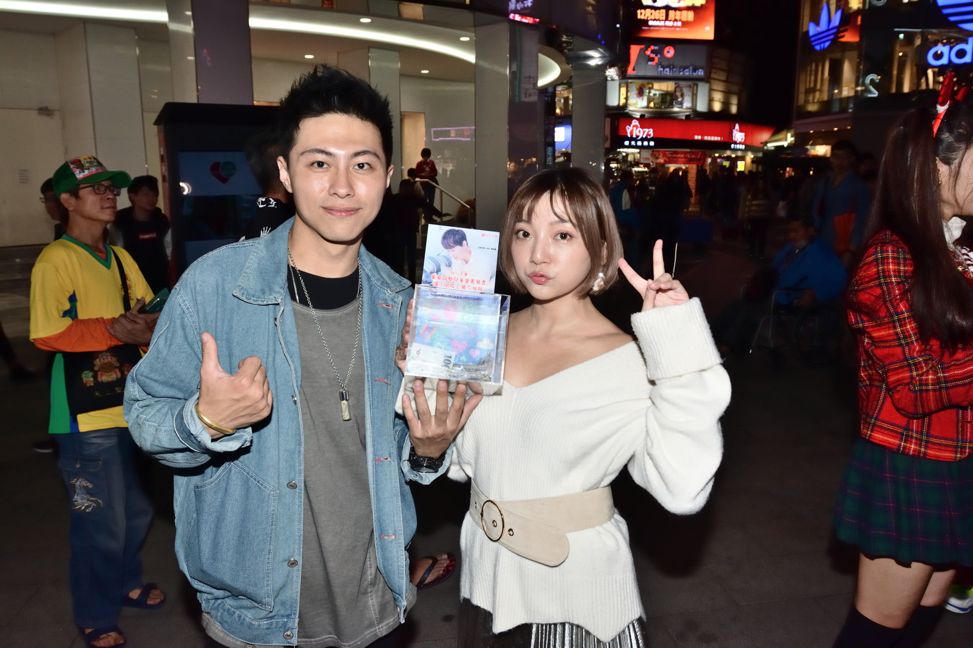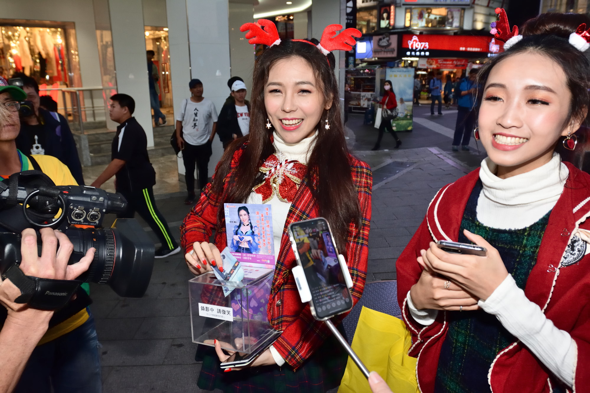 無双樂團成員-姿姿、熙娜,也走上街頭號召,打出捐零錢發票,送合照的募款點子,最後還加碼替善心的朋友錄製聖誕專屬祝福影片。姿姿說:明年就是無双樂團10週年,屆時也會有更多的無双成員一起加入公益行列;熙娜則是說:在寒冷的冬天,有大家暖暖的愛,能夠給心納家庭們最有愛的溫暖。