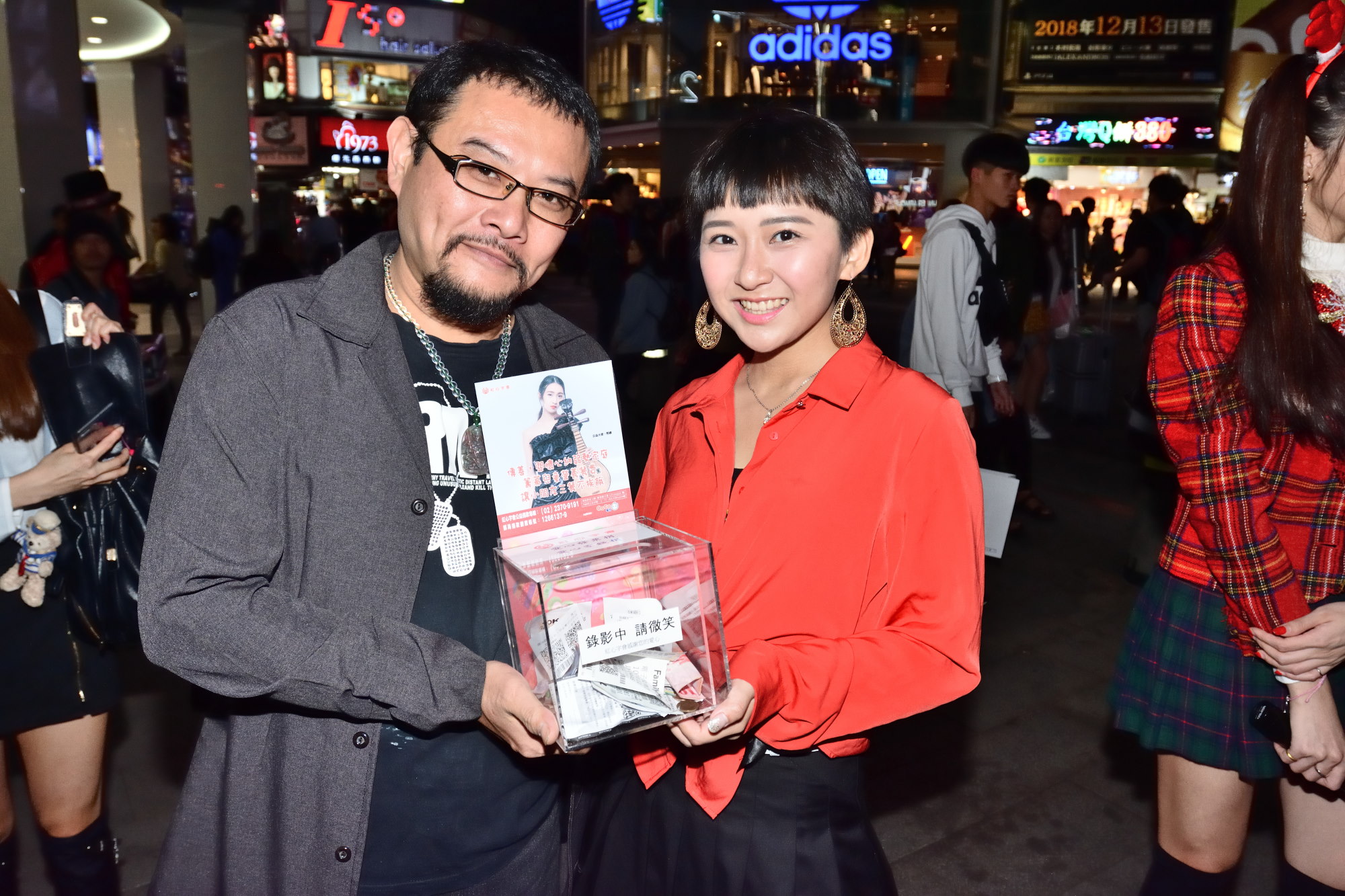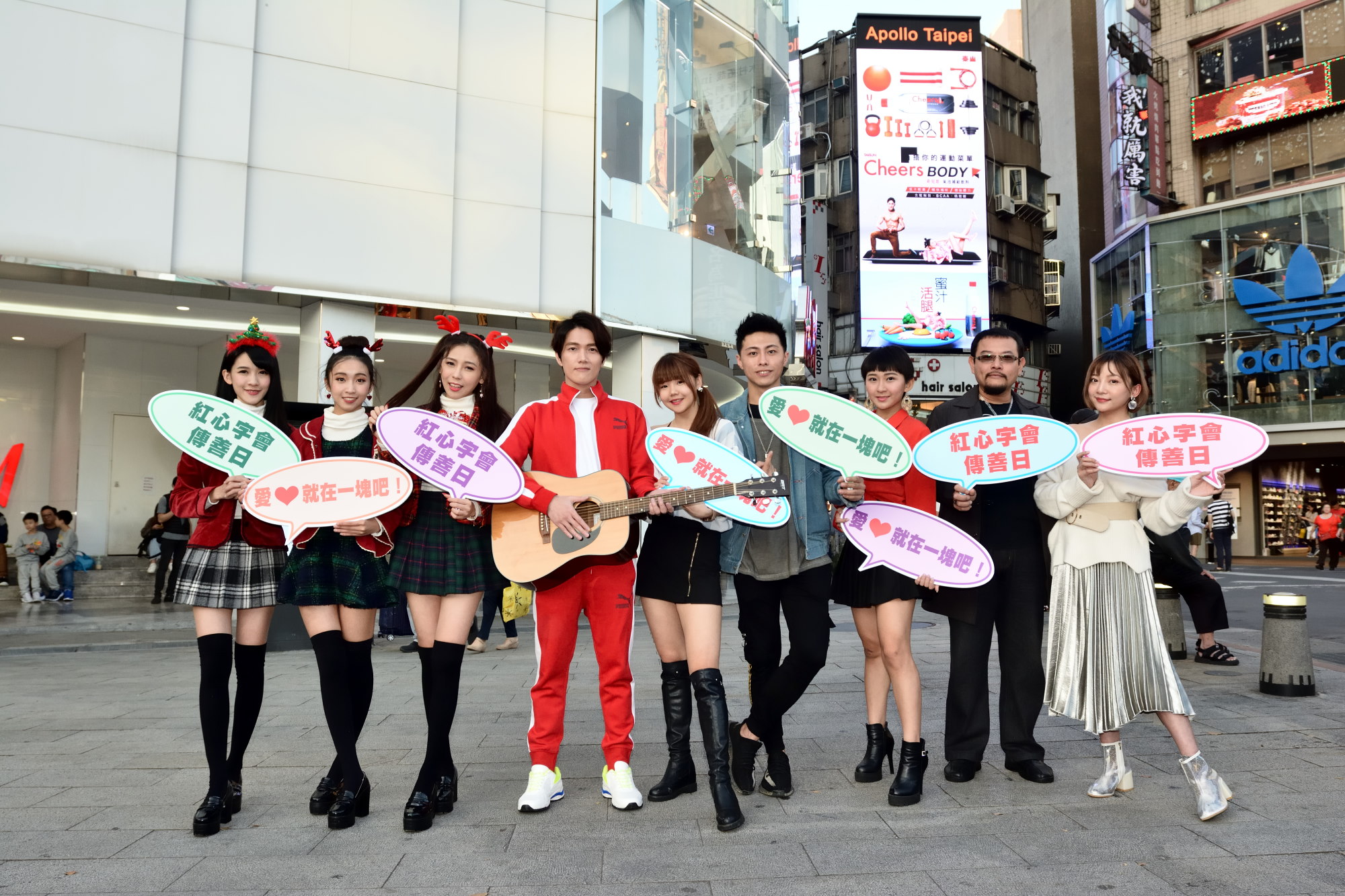 將近十位的藝人手捧捐款箱、帶著擴音器,走在西門町鬧區,沿路賣力呼喊向逛街的年輕朋友們宣導籌募善款。相隔8年推出新歌〈痛也愛你〉回歸歌壇,來自新加坡的歌手JERIC陳傑瑞還自己帶來吉他,用自彈自唱的方式,以歌聲來吸引路人停留,一連三首歌唱下來,成功募得三張千元大鈔;陳傑瑞表示:「第一次接觸紅心字會是7年前參加一個公益演唱會的活動,而這次重新回歸歌壇也和紅心字會繼續合作公益,想要跟心納家庭(受刑人家庭子女)的朋友們說:不要怕!你有,陳傑瑞,我會一直陪伴你們。