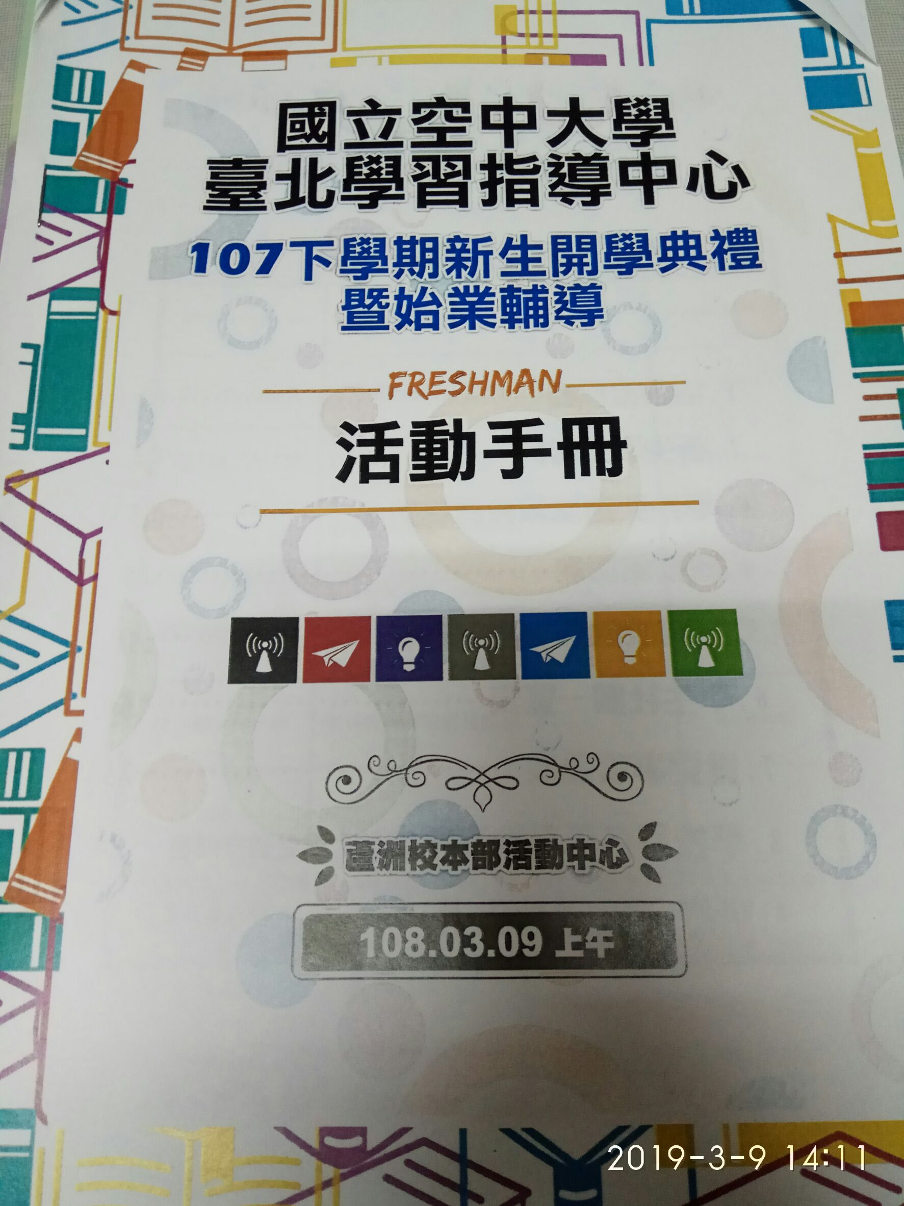 國立空中大學臺北中心107學年度下學期開學典禮熱鬧登場,由中心吳主任政穎博士,逐一介紹各系中心主管、導師外,並邀請各系、中心介紹課程學習特色及24個社團組成等,現場充滿新生學習與成長豐盈喜悅溢於言表,最後各班導生逐一進教室,解說學校教務、學務及校網操作,並鼓勵加入班群,以利師生互動及增進學習成效與提高續學率目標,結束後同學們充滿校園隆重氛圍,增進成人與活絡社會教育,邁向國家終身教育指標。